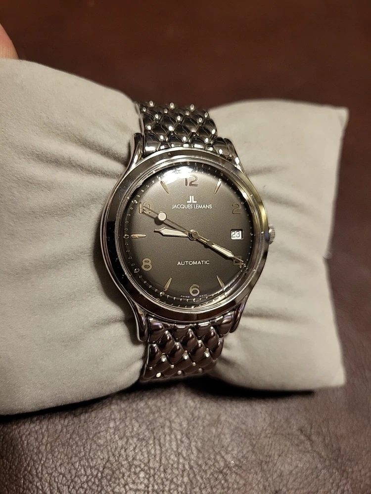 Resisting due to non paying buyer. Classy 38.5mm swiss made JL. Has a scuff on the crystal at 10:20 and a very light scratch at 6. Bracelet has a snug fit at 7.25". Watch runs well. So many more to come so be sure to check back!