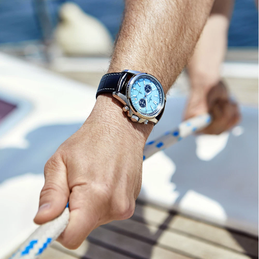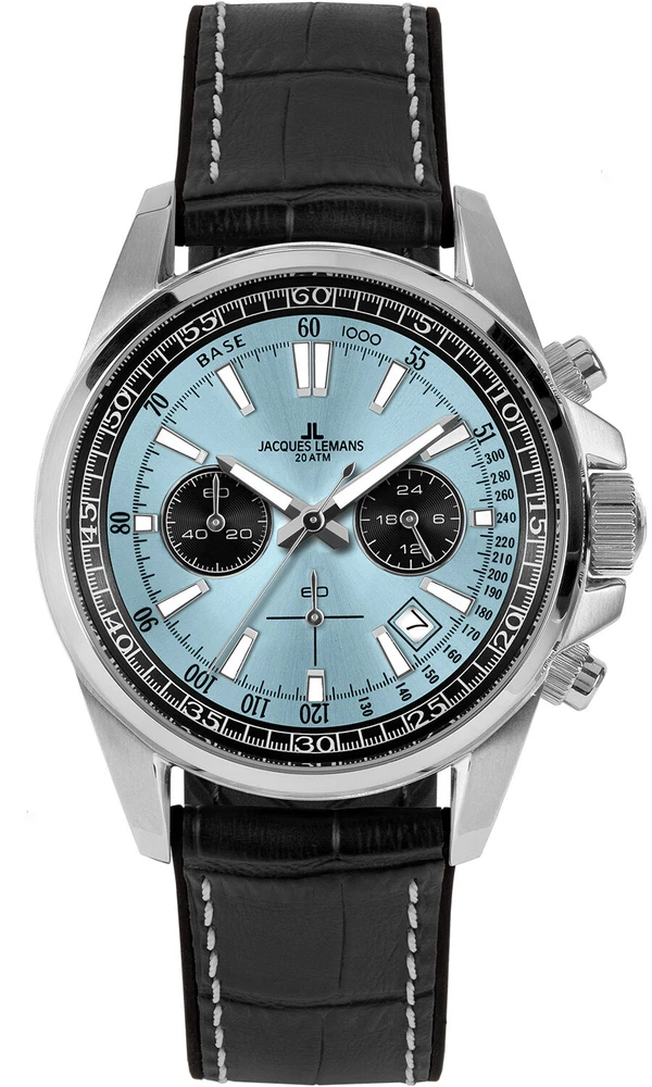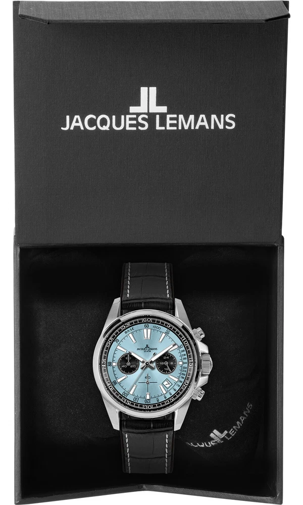 Jacques Lemans Men's Watch Chronograph Liverpool Black/Light Blue Chrono 1-2117R fashionable men's wristwatch with chrono quartz movement, date with quick correction, stop function up to 60 minutes in 1/1 second increments, 24-hour display, light blue sunray dial, black sub-dials, dial edge with minute track, luminescent hands and indices, black numbers, central second hand, case made of polished stainless steel, matt strap lugs, screwed case back, polished bezel, screwed crown with logo, scratch-resistant mineral glass, strap made of black leather with crocodile embossing, polished pin buckle with engraved logo, water resistant up to 20 bar, width (without crown) 44.5 mm, height 13 mm Features of the Jacques Lemans watch: Department: Men Strap width: 22 mm Strap color: Black Case thickness: 13 mm Case color: silver Case shape: Round Case size: 45 mm Case material: stainless steel Country and region of manufacture: China Maximum wrist circumference: 21.1-22 cm Product type: Men's watches Series: Liverpool Movement: Quartz Closure: pin buckle Water resistance: 20 bar Dial color: Blue Special features: Chronograph Date display Mineral glass Screw-down crown You can find the large selection of Jacques Lemans watches in the uhrcenter eBay Shop: Jacques Lemans Watches at uhrcenter Information according to ElektroG You are legally obliged to return old electrical appliances. Old electrical appliances must not be disposed of in household waste, but must be collected separately. For this reason, electrical appliances are marked with the crossed-out garbage can. The substances contained in old electrical appliances can be reused. Please separate batteries, accumulators and lamps that are not enclosed in the old electrical device before handing it in. We are legally obliged to take back old electrical devices free of charge. You can return your old electrical appliance to us free of charge when you purchase a comparable new electrical appliance. When we deliver the new electrical appliance, we will collect the old appliance free of charge. This free collection is limited to waste equipment in the categories of heat exchangers, screens, monitors and equipment containing screens with a surface area of more than 100 square centimetres, and large appliances. Regardless of whether you purchase a new electrical appliance, you can return an old appliance that is no larger than 25 cm in any dimension to us free of charge. If you would like to return an old electrical device to us, please request a shipping label using the contact details provided in the seller's imprint. Please note that you are responsible for deleting personal data from the devices to be disposed of. Note according to the Battery Act Since our shipments may contain batteries and rechargeable batteries, we are obliged under the Battery Act (BattG) to inform you of the following: Batteries and rechargeable batteries must not be disposed of in household waste; you are legally obliged to return used batteries and rechargeable batteries. Used batteries may contain harmful substances that can harm the environment or your health if not stored or disposed of properly. However, batteries also contain important raw materials such as iron, zinc, manganese or nickel and can be recycled. You can either return the batteries to us after use or return them free of charge to a nearby retailer or municipal collection point or to our shipping warehouse. The sale in sales outlets is limited to the quantities usual for end users and to those used batteries that the distributor has or has had in its range as new batteries. The symbol with the crossed-out garbage can means that you must not dispose of batteries in household waste. Under this symbol you will also find the following symbols with the following meaning: Pb: Battery contains lead Cd: Battery contains cadmium Hg: Battery contains mercury uhrcenter Watches & Jewellery Top Brands Jacques Lemans Men's Watch Chronograph Liverpool Black/Light Blue Chrono 1-2117R fashionable men's wristwatch with chrono quartz movement, date with quick correction, stop function up to 60 minutes in 1/1 second increments, 24-hour display, light blue sunray dial, black sub-dials, dial edge with minute track, luminescent hands and indices, black numbers, central second hand, case made of polished stainless steel, matt strap lugs, screwed case back, polished bezel, screwed crown with logo, scratch-resistant mineral glass, strap made of black leather with crocodile embossing, polished pin buckle with engraved logo, water resistant up to 20 bar, width (without crown) 44.5 mm, height 13 mm