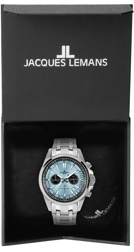 Jacques Lemans Men's Watch Chronograph Liverpool Steel / Light Blue 1-2117ZB The description of this item has been automatically translated. If you have any questions, please feel free to contact us. Jacques Lemans Men's Watch Chronograph Liverpool Steel/Light Blue Chrono 1-2117ZB Trendy men's wristwatch with chrono quartz movement, date with quick correction, stop function up to 60 minutes in 1/1 second increments, 24-hour display, light blue sunray dial, black sub-dials, dial edge with minute track, luminescent hands and indices, black numbers, central Second hand, case made of polished stainless steel, matt strap lugs, screwed case back, polished bezel, screwed crown with Logo, scratch-resistant mineral glass, bracelet made of matt stainless steel with polished stripes, safety folding clasp with logo, waterproof up to 20 bar, width (without crown) 44.5 mm, height 13 mm Features of the Jacques Lemans watch: Department: Men Strap width: 22 mm Strap color: silver Case thickness: 13 mm Case color: silver Case shape: Round Case size: 45 mm Case material: stainless steel Country and region of manufacture: China Maximum wrist circumference: 20.1-21 cm Product type: Men's watches Series: Liverpool Movement: Quartz Clasp: Folding clasp with safety bar Water resistance: 20 bar Dial color: Blue Special features: Chronograph Date display Mineral glass Screw-down crown You can find the large selection of Jacques Lemans watches in the uhrcenter eBay Shop: Jacques Lemans Watches at uhrcenter Information according to ElektroG You are legally obliged to return old electrical appliances. Old electrical appliances must not be disposed of in household waste, but must be collected separately. For this reason, electrical appliances are marked with the crossed-out garbage can. The substances contained in old electrical appliances can be reused. Please separate batteries, accumulators and lamps that are not enclosed in the old electrical device before handing it in. We are legally obliged to take back old electrical devices free of charge. You can return your old electrical appliance to us free of charge when you purchase a comparable new electrical appliance. When we deliver the new electrical appliance, we will collect the old appliance free of charge. This free collection is limited to waste equipment in the categories of heat exchangers, screens, monitors and equipment containing screens with a surface area of more than 100 square centimetres, and large appliances. Regardless of whether you purchase a new electrical appliance, you can return an old appliance that is no larger than 25 cm in any dimension to us free of charge. If you would like to return an old electrical device to us, please request a shipping label using the contact details provided in the seller's imprint. Please note that you are responsible for deleting personal data from the devices to be disposed of. Note according to the Battery Act Since our shipments may contain batteries and rechargeable batteries, we are obliged under the Battery Act (BattG) to inform you of the following: Batteries and rechargeable batteries must not be disposed of in household waste; you are legally obliged to return used batteries and rechargeable batteries. Used batteries may contain harmful substances that can harm the environment or your health if not stored or disposed of properly. However, batteries also contain important raw materials such as iron, zinc, manganese or nickel and can be recycled. You can either return the batteries to us after use or return them free of charge to a nearby retailer or municipal collection point or to our shipping warehouse. The sale in sales outlets is limited to the quantities usual for end users and to those used batteries that the distributor has or has had in its range as new batteries. The symbol with the crossed-out garbage can means that you must not dispose of batteries in household waste. Under this symbol you will also find the following symbols with the following meaning: Pb: Battery contains lead Cd: Battery contains cadmium Hg: Battery contains mercury uhrcenter Watches & Jewellery Top Brands Jacques Lemans Men's Watch Chronograph Liverpool Steel/Light Blue Chrono 1-2117ZB Trendy men's wristwatch with chrono quartz movement, date with quick correction, stop function up to 60 minutes in 1/1 second increments, 24-hour display, light blue sunray dial, black sub-dials, dial edge with minute track, luminescent hands and indices, black numbers, central Second hand, case made of polished stainless steel, matt strap lugs, screwed case back, polished bezel, screwed crown with Logo, scratch-resistant mineral glass, bracelet made of matt stainless steel with polished stripes, safety folding clasp with logo, waterproof up to 20 bar, width (without crown) 44.5 mm, height 13 mm Abteilung Herren Armbandbreite 22 mm Armbandfarbe Silber Armbandmaterial Edelstahl Anzeigeformat Chronograph Besonderheiten Datumsanzeige Besonderheiten Mineralglas Besonderheiten Verschraubte Krone Besonderheiten Chronograph Gehäusedicke 13 mm Gehäusegröße 45 mm Gehäusematerial Edelstahl Herstellungsjahr 2020-Heute Herstellungsland und -region China Marke Jacques Lemans Maximaler Handgelenkumfang 20,1-21 cm Modell Liverpool Produktart Armbanduhr Stil Lässig Stil Kleid/Formell Uhrenform Rund Uhrengehäuse-Farbe Silber Uhrwerk Quarz Verschluss Faltschließe mit Sicherheitsbügel Wasserdichtigkeit 20 bar Zifferblattfarbe Blau EAN 4040662179191