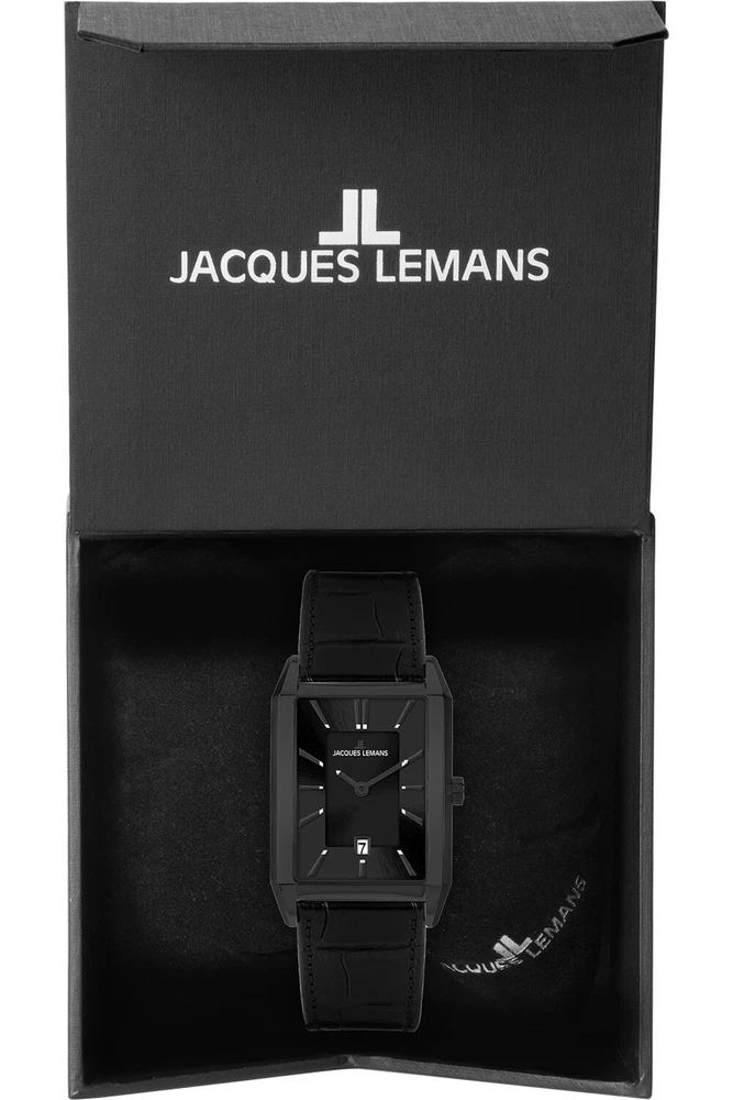 Jacques Lemans Men's Watch Quartz Black 1-2160F The description of this item has been automatically translated. If you have any questions, please feel free to contact us. Jacques Lemans Men's Quartz Watch Black 1-2160F elegant wristwatch for men, precise quartz movement, date display, 2-layer black sunray dial, silver-colored hands and indices with luminous dots, rectangular stainless steel case with matt black plating, 4-fold screwed case back, crown with logo, slightly domed mineral glass with sapphire coating, black leather strap with crocodile embossing, black pin buckle with logo engraving, water resistant up to 5 bar, width (without crown) 34 mm, height 8 mm Features of the Jacques Lemans watch: Department: Men Strap width: 23 mm Strap color: Black Case thickness: 8 mm Housing color: Black Case shape: Rectangle Case material: stainless steel Country and region of manufacture: China Maximum wrist circumference: 21.1-22 cm Product type: Men's watches Movement: Quartz Closure: pin buckle Water resistance: 5 bar Dial color: Black Special features: Date display Mineral glass You can find the large selection of Jacques Lemans watches in the uhrcenter eBay Shop: Jacques Lemans Watches at uhrcenter Information according to ElektroG You are legally obliged to return old electrical appliances. Old electrical appliances must not be disposed of in household waste, but must be collected separately. For this reason, electrical appliances are marked with the crossed-out garbage can. The substances contained in old electrical appliances can be reused. Please separate batteries, accumulators and lamps that are not enclosed in the old electrical device before handing it in. We are legally obliged to take back old electrical devices free of charge. You can return your old electrical appliance to us free of charge when you purchase a comparable new electrical appliance. When we deliver the new electrical appliance, we will collect the old appliance free of charge. This free collection is limited to waste equipment in the categories of heat exchangers, screens, monitors and equipment containing screens with a surface area of more than 100 square centimetres, and large appliances. Regardless of whether you purchase a new electrical appliance, you can return an old appliance that is no larger than 25 cm in any dimension to us free of charge. If you would like to return an old electrical device to us, please request a shipping label using the contact details provided in the seller's imprint. Please note that you are responsible for deleting personal data from the devices to be disposed of. Note according to the Battery Act Since our shipments may contain batteries and rechargeable batteries, we are obliged under the Battery Act (BattG) to inform you of the following: Batteries and rechargeable batteries must not be disposed of in household waste; you are legally obliged to return used batteries and rechargeable batteries. Used batteries may contain harmful substances that can harm the environment or your health if not stored or disposed of properly. However, batteries also contain important raw materials such as iron, zinc, manganese or nickel and can be recycled. You can either return the batteries to us after use or return them free of charge to a nearby retailer or municipal collection point or to our shipping warehouse. The sale in sales outlets is limited to the quantities usual for end users and to those used batteries that the distributor has or has had in its range as new batteries. The symbol with the crossed-out garbage can means that you must not dispose of batteries in household waste. Under this symbol you will also find the following symbols with the following meaning: Pb: Battery contains lead Cd: Battery contains cadmium Hg: Battery contains mercury uhrcenter Watches & Jewellery Top Brands Jacques Lemans Men's Quartz Watch Black 1-2160F elegant wristwatch for men, precise quartz movement, date display, 2-layer black sunray dial, silver-colored hands and indices with luminous dots, rectangular stainless steel case with matt black plating, 4-fold screwed case back, crown with logo, slightly domed mineral glass with sapphire coating, black leather strap with crocodile embossing, black pin buckle with logo engraving, water resistant up to 5 bar, width (without crown) 34 mm, height 8 mm Abteilung Herren Armbandbreite 23 mm Armbandfarbe Schwarz Armbandmaterial Leder Anzeigeformat Analog Besonderheiten Datumsanzeige Besonderheiten Mineralglas Gehäusedicke 8 mm Gehäusematerial Edelstahl Herstellungsjahr 2020-Heute Herstellungsland und -region China Marke Jacques Lemans Maximaler Handgelenkumfang 21,1-22 cm Produktart Armbanduhr Stil Klassisch Stil Kleid/Formell Uhrenform Rechteck Uhrengehäuse-Farbe Schwarz Uhrwerk Quarz Verschluss Dornschließe Wasserdichtigkeit 5 bar Zifferblattfarbe Schwarz EAN 4040662177449