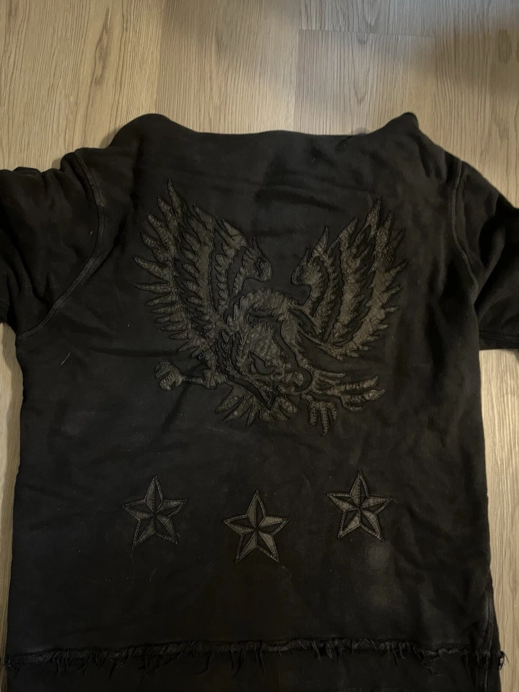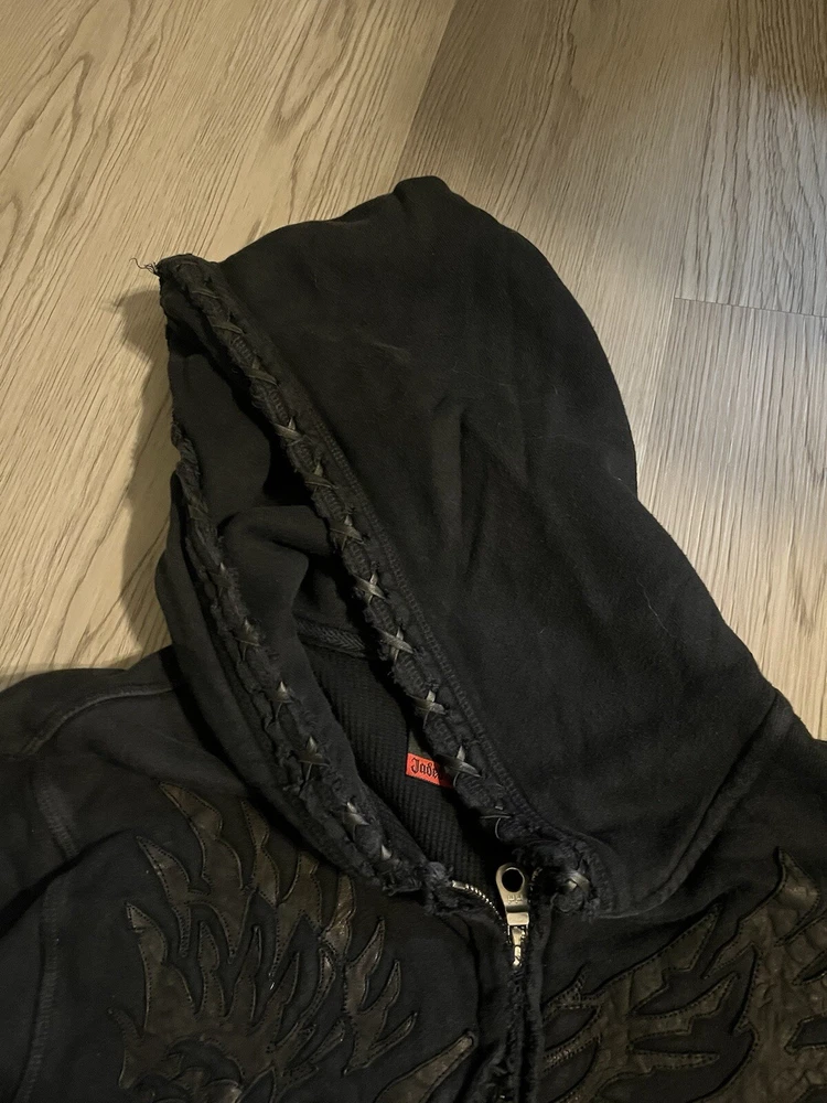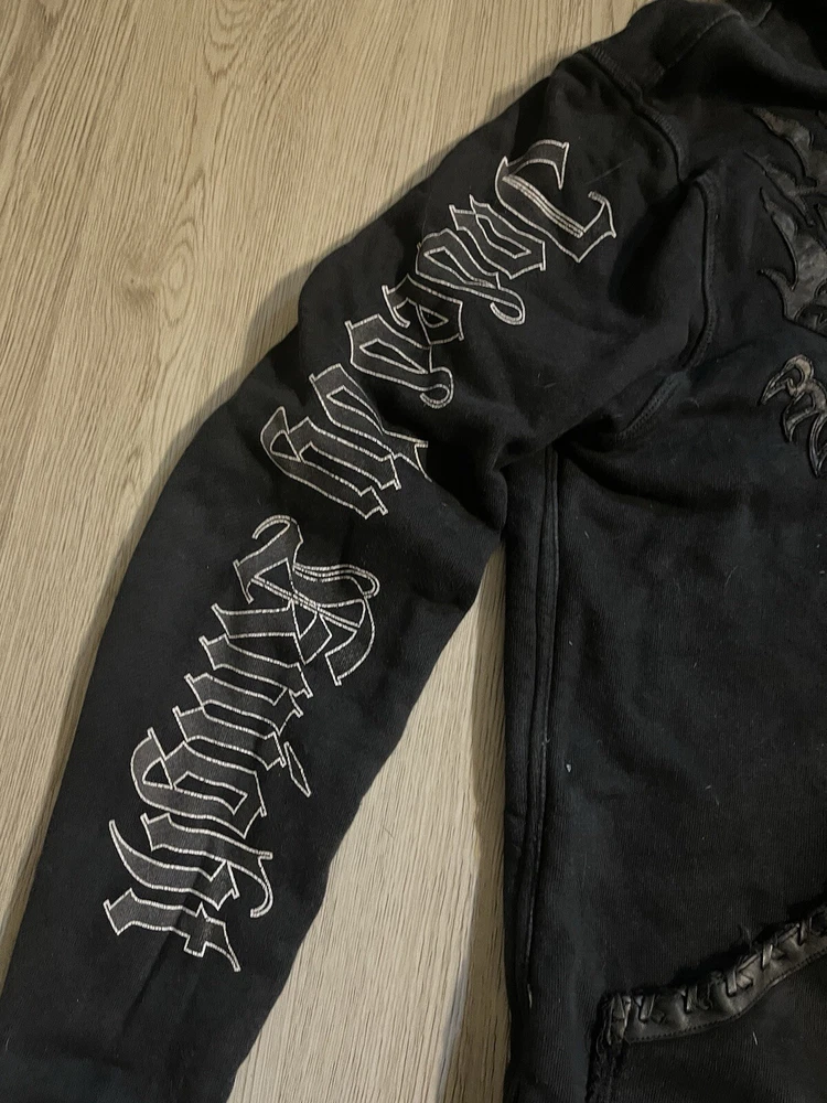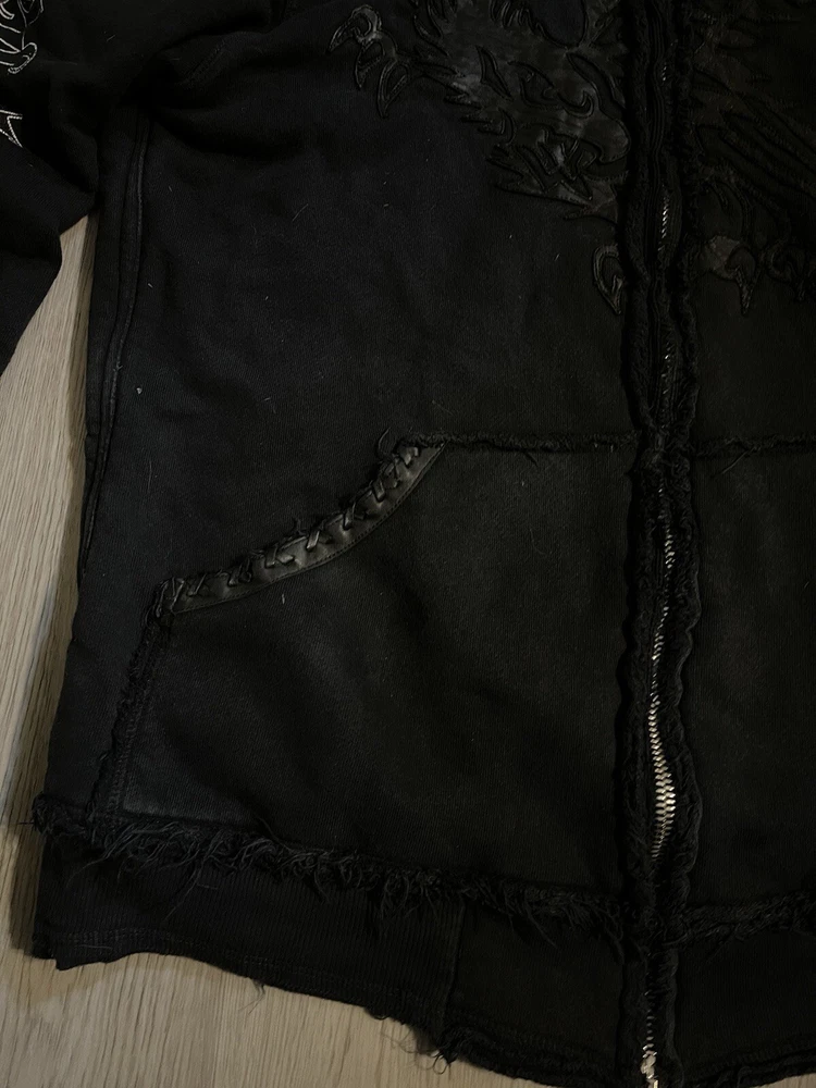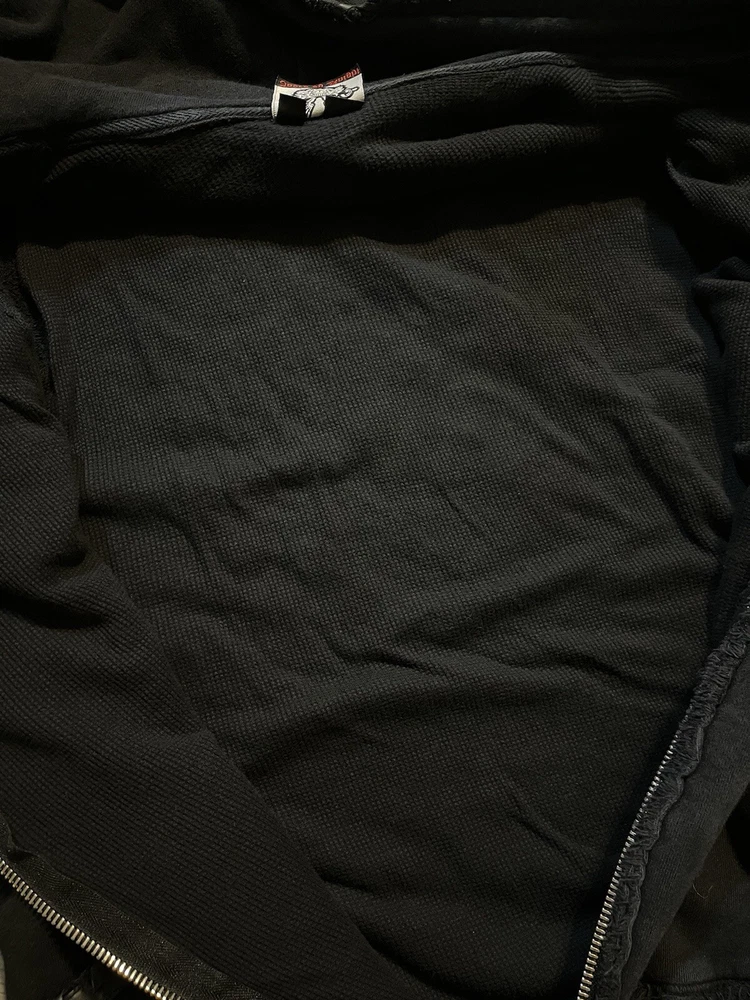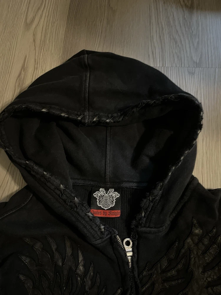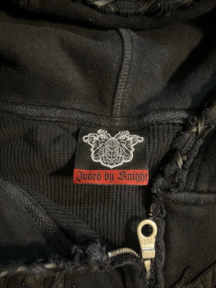 This rare, vintage hoodie is a must-have for any fashion-forward man. The black Jaded By Knight hoodie features a zip closure and is made with thermal lining for ultimate warmth and comfort. The hoodie is designed with a Y2K style and is perfect for any casual occasion. The iconic Jade character adds a touch of personality to the piece, making it a unique addition to any wardrobe. The hoodie is available in a size M and is suitable for regular size types. This item is perfect for any collector or fashion enthusiast looking to add a rare, vintage piece to their collection. Check the measurements for proper sizing, seems like a tall medium.