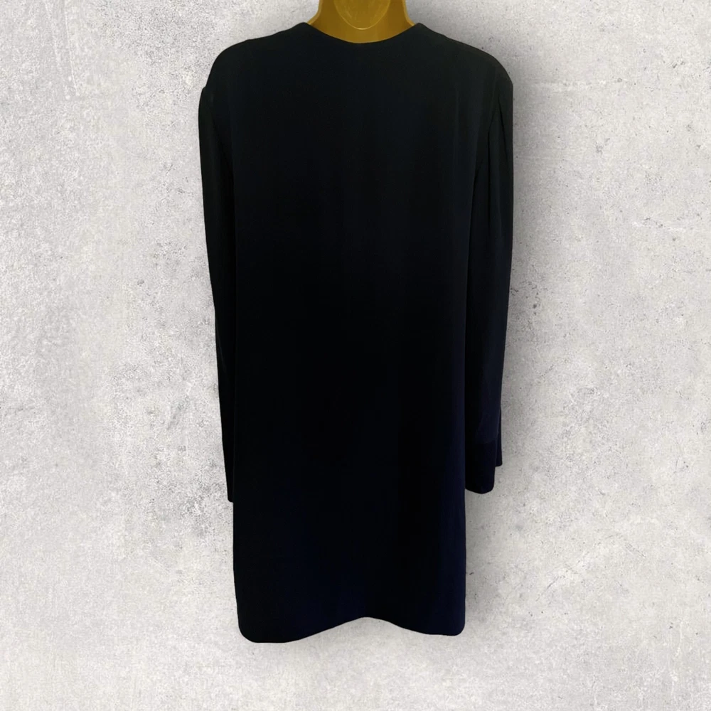 This is a beautiful longline jacket, simple in design but extremely chic. Simply stunning, elegant jacket that can be worn to the office or dressed up as a beautiful addition to any occasion outfit. Fabric: Polyester Blend Care advice: Machine washable Measurements Bust 42", 107cm Shoulder to shoulder 16.5", 42cm Sleeve length 24", 61cm Length 38", 96cm Never worn