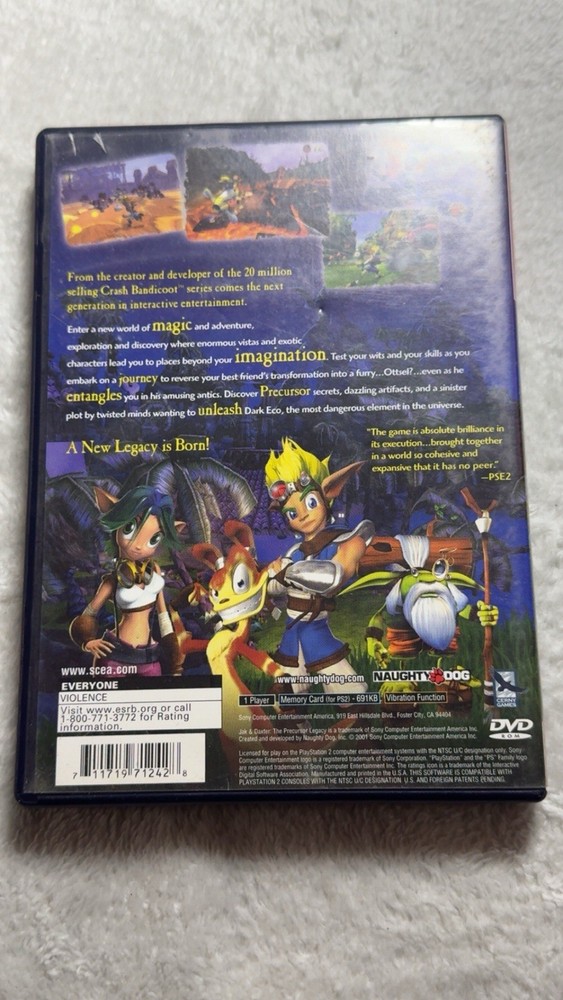 Jak and Daxter: The Precursor Legacy Greatest Hits for Sony PlayStation 2, released in 2002, is an action and adventure game published by Sony. With an E-Everyone rating, players can enjoy the captivating gameplay and unique story of Jak and Daxter as they navigate through a thrilling adventure filled with challenges and puzzles. This greatest hits edition offers a chance for gamers to experience the beloved title in a convenient format, perfect for PlayStation 2 enthusiasts looking to immerse themselves in this popular action-packed game.