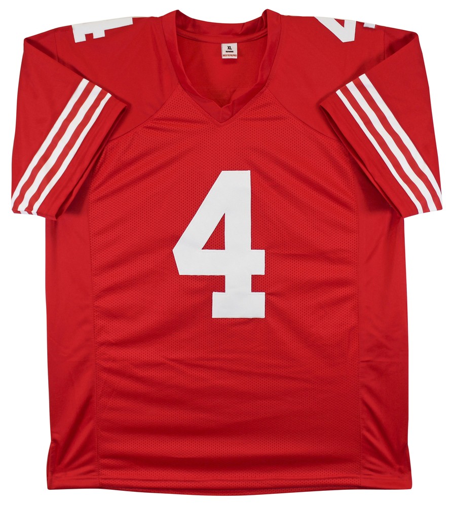Press Pass Collectibles Football Trading Cards Photographs Framed Photographs Footballs Jerseys Framed Jerseys Game Used Helmets Mini Helmets Index Cards Lithographs Magazines Other Baseball Trading Cards Photographs Framed Photographs Baseballs Bats Jerseys Game Used Helmets Index Cards Lithographs Magazines Other Basketball Trading Cards Photographs Framed Photographs Jerseys Framed Jerseys Basketballs Game Used Floors Index Cards Magazines Other Hockey Trading Cards Photographs Jerseys Framed Jerseys Game Used Hockey Sticks Pucks Index Cards Magazines Other Boxing Photographs Framed Photographs Gloves Trunks Other Golf Photographs Balls Flags Index Cards Other Misc Sports MMA Olympic Racing Soccer Tennis Wrestling Other Celebrity Photographs Framed Photographs Books Magazines Posters Other Music Photographs Framed Photographs Performance Used Albums CDs Drum Heads Drum Sticks Guitar Posters Programs Other Historical Photographs Documents Military Space Other Presidential Photographs Baseballs Books Documents Magazines Other All Inventory 99.99 This Autographed Red Pro Style Jersey has been Personally Signed by Jake Moody of the San Francisco 49ers. This item is 100% Authentic to include a hologram by Beckett Authentication Services. This item will come with an affixed Beckett Authentication Services (BAS) authentication sticker, which includes a scannable QR code to verify authenticity. Please note that Beckett no longer provides serial-numbered COA cards, and the attached BAS sticker will serve as the complete authentication for this item. This is a BAS Witnessed Protection Program item which means a Beckett Authentication Service representative was present when this item was being signed. We conducted an autograph signing with Jake Moody where multiples of the same item were signed. While the photographs are representative of this item, the size, placement and strength of the signature may vary. Each item is hand signed, therefore, each autograph is unique. This item can be verified through BAS Witnessed. This is a X-Large sized Jersey. Product Details Signed By: Jake Moody Additional Info: San Francisco 49ers Authenticated By: Beckett Details: The PPC Guarantee: Press Pass Collectibles (PPC) offers authentic in-person autographs that include a 100% money-back lifetime guarantee regarding the autograph's authenticity. Our items are sourced from PPC autograph signings or direct from leading suppliers of authentic memorabilia. The companies that authenticate these items include Beckett Authentication Services (BAS), Professional Sports Authenticator (PSA/DNA), James Spence Authentication (JSA), Steiner Sports, Upper Deck, Fanatics, Mounted Memories, and Tri-Star Productions. All autographed items come with a Certificate of Authenticity (COA) from these suppliers that includes a tamper proof hologram affixed to the item. Shipping: Press Pass Collectibles ships all orders via UPS, FedEx, or USPS within 24 business hours. We will combine shipping ! Additional items are typically $1 - $2 each, but cost may vary depending on dimensions and weight. Please contact us for a combined invoice prior to making your paymen t. PPC Exclusives: Press Pass Collectibles has exclusive autograph relationships with over 50 professional athletes and celebrities including Magic Johnson, Chevy Chase, Travis Kelce, DK Metcalf, Justin Jefferson, Randy Moss, Kyler Murray, Adrian Peterson, Baker Mayfield, Ray Lewis, George Kittle, Dak Prescott, Jerome Bettis, Chase Claypool, Deion Sanders, Jack Lambert, Mean Joe Greene, T.J. Watt, J.J. Watt, Tony Dorsett, Devin White, Tony Gonzalez, Emmitt Smith, Michael Irvin, Jason Witten, Jared Allen, Kurt Warner and more! Shop our entire collection