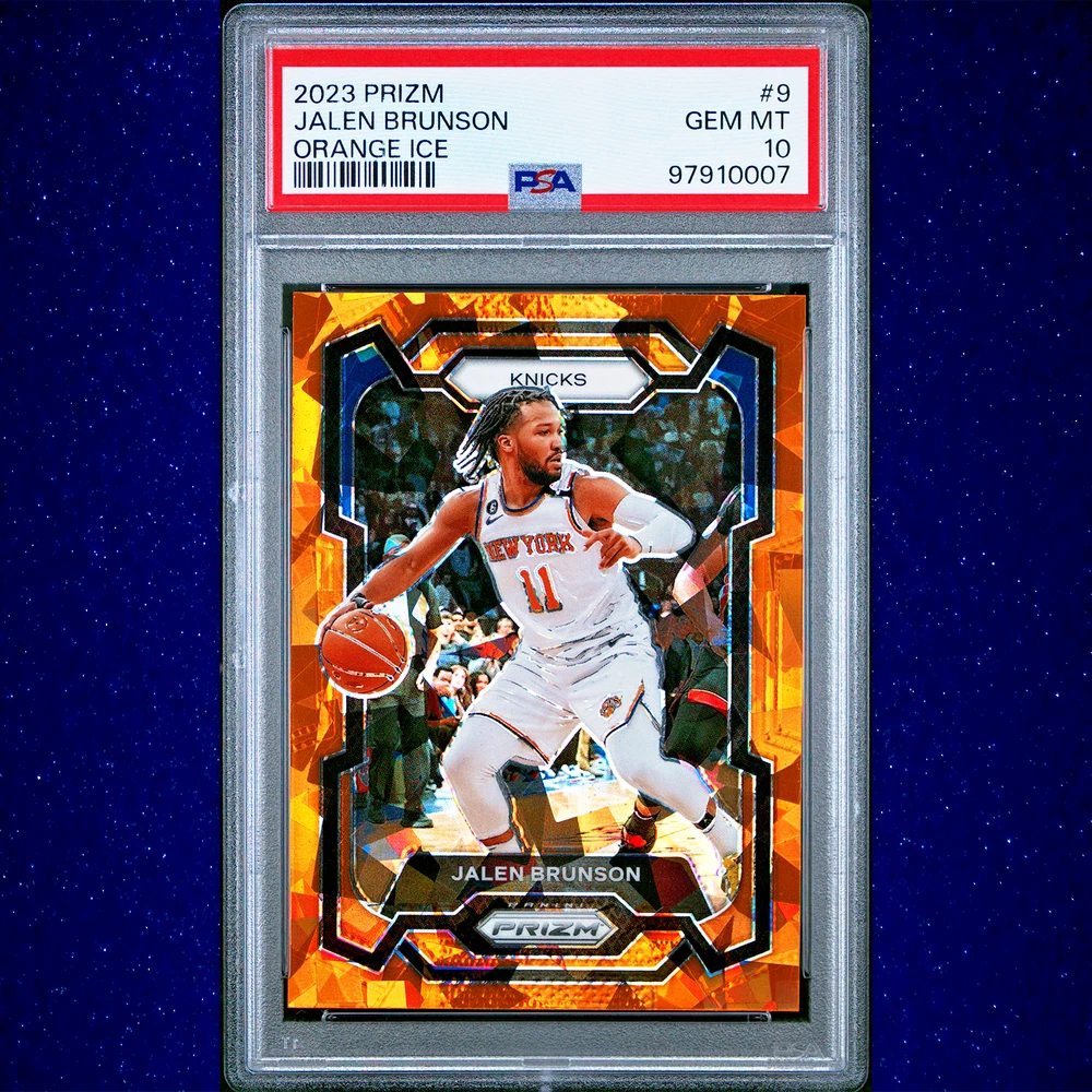 Jalen Brunson 2023 Panini Prizm #9 Orange Ice PSA 10 All orders ship within 24 hours of payment. For Graded Cards you will receive the card(s) listed in the title and pictured in the scan, because at times we may have duplicates of the exact same grade card, you will receive the exact card and grade listed but certification number might be different. Graded cards will be put in a graded sleeve, wrapped in cardboard, and shipped in bubble mailer to ensure it arrives in pristine condition. For Ungraded Single Cards you will receive the exact card(s) listed in the title and pictured. Ungraded Single cards over $20 will be shipped the same way as graded cards Ungraded Single cards under $20 will be shipped in a toploader and team bag using eBay standard envelope, if you would prefer to have it shipped with more protection in bubble mailer, please send us a message and we can provide an updated shipping quote for you. RETURN POLICY : We allow returns with full refunds but do not offer partial refunds. Returns are available to our customers if they did not get the item they are intended to receive. They are not for them to buy and decide they do not want them. 1. Items returned because of damage, missing parts, wrong item sent, will be given full refunds 2. Items returned because of buyers remorse, changed my mind, found better price, just didn't like it will by charged a minimum of 20% restocking fee SALES TAX : Sales tax is charged in accordance w/all of eBay's policies and the state where the item is being sent. ADDITIONAL INFORMATION : We are actively accepting ebay consignments, please message us for any inquiries. THANKS FOR LOOKING AND PLEASE MESSAGE US WITH ANY QUESTIONS! Check out our other eBay listings by clicking this link: TopShop828 eBay Store !