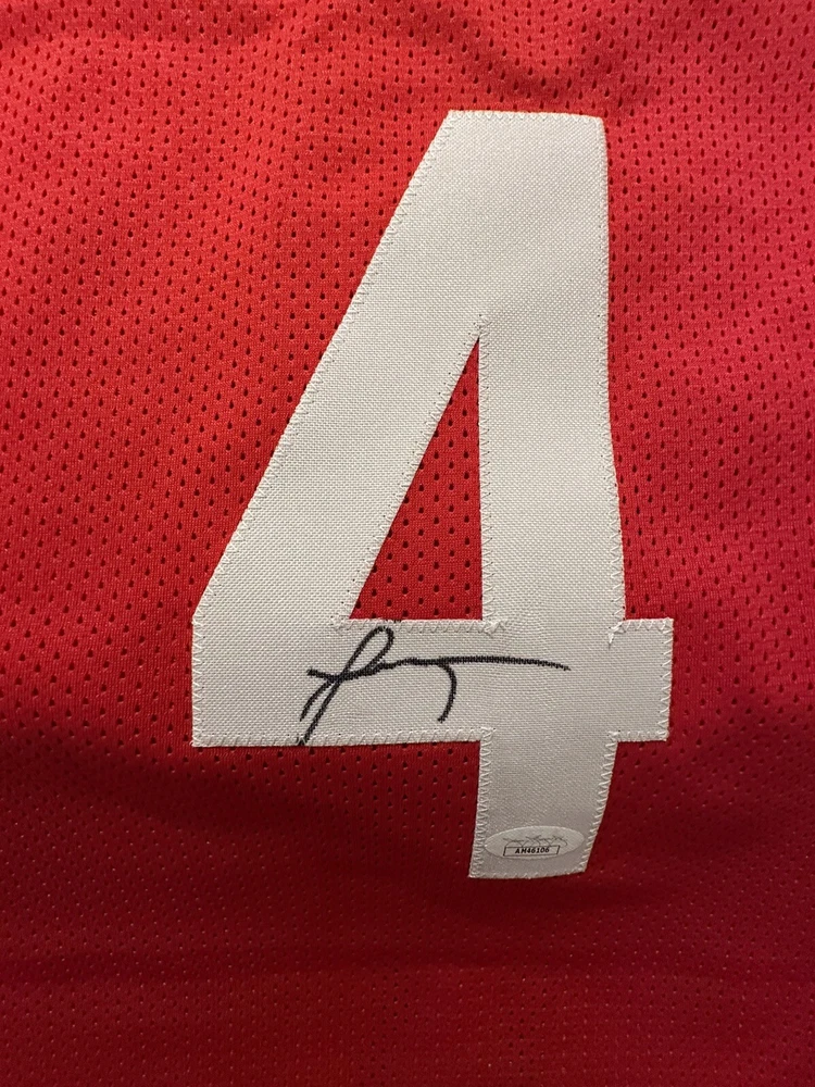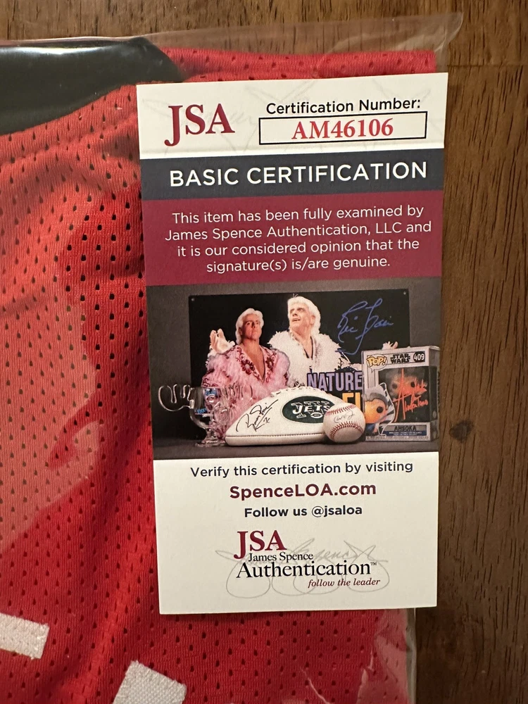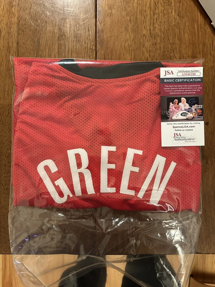 The product is an autographed Jalen Green jersey from the Houston Rockets in the NBA. The jersey is signed by Jalen Green and comes with a certification from James Spence Authentication (JSA). It is an original item and was made in the United States. The jersey features the number 4 and is a highly sought-after collectible item. Jersey comes AS IT IS LISTED IN THE PICTURES!! The jersey was only removed from the bag it came in to take pictures. It was not removed before or after the pictures were taken! The buyer pays for shipping. Any other questions let me know and check out my other auctions!