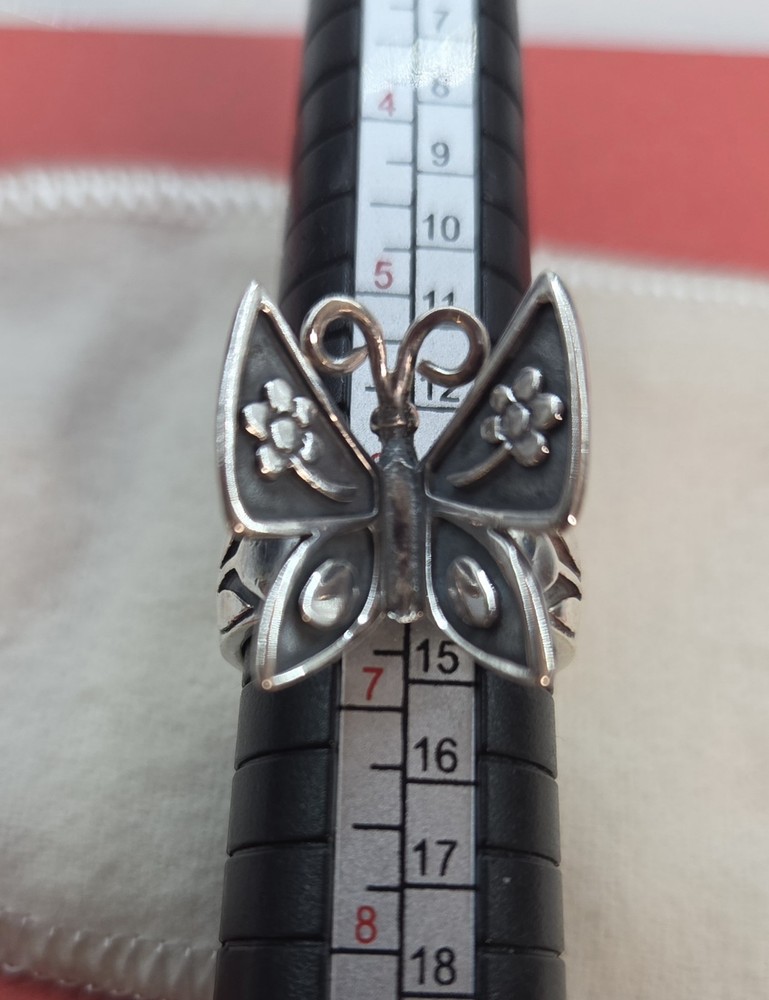 The James Avery 925 Sterling Silver Mariposa Butterfly Ring is a beautiful and unique piece of fine jewelry. Crafted with 925 sterling silver, this ring features a charming butterfly shape with a band width of 17.8mm. It is signed by James Avery, ensuring its authenticity and quality. The 3D style and artistic design will be a standout piece for anyone with an eye for something unique.