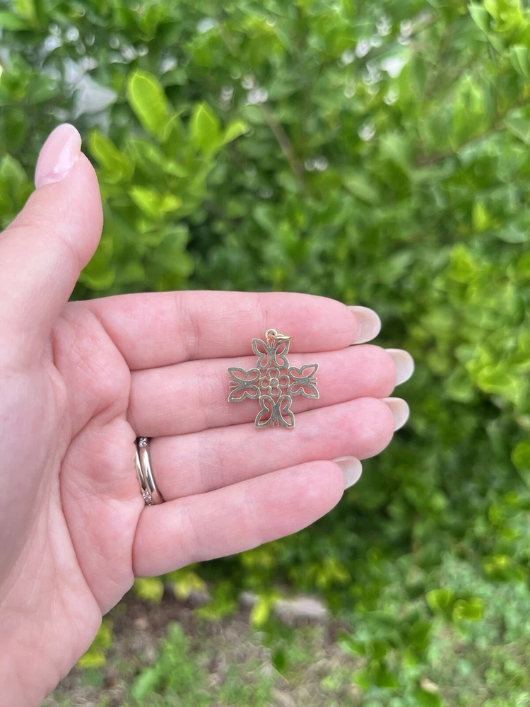 Pendant Shape: Cross Main Stone: No Stone Base Metal: Gold Style: Pendant Metal: Yellow Gold Type: Pendant Brand: James Avery Color: Gold Main Stone Shape: Butterfly Metal Purity: 14k Theme: Religious