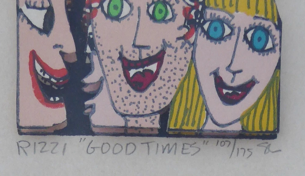 Vgood condition, comes with FREE USED frame, some toning from age " GOOD TIMES " 1986 Vintage "Good Times" is a 3-D original serigraph on paper by James Rizzi numbered 107/175 and hand signed by the artist. FREE USED Frame Measures approx. Size:17 3/4" x 17 3/4" (45 x 45cm) Motiv ca / Picture : 6,3 cm x 8,8 cm About the artist: (October 5, 1950 – December 26, 2011) was an American pop artist who was born and raised in Brooklyn, New York. d During his lifetime one of the most popular artist, a real „Pop Artist“. He became famous through his invention of the 3D-construction on paper and the 3D-magnetic objects. Since the 1970s those inventions are always connected with his art. This piece will be carefully shipped. Buyers are responsible for import duties/fees/taxes. Please note that colors on screen may vary slightly from actual artwork due to digital device screen calibration. Worldwide shipping available. Buyer is responsible for import duties/fees/taxes. See my other listings for more art. Thank you for looking!