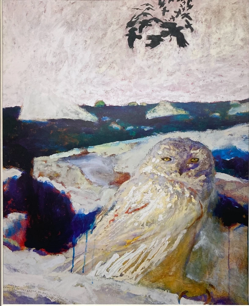 Jamie Wyeth "Snow Owl '20" This Artprint is: NEW CUSTOM FRAMED In light brown frame Double Matted Framed Size : 19" x 17" Framed in the USA Hanging hardware included on back of frame Interested in different framing? Contact us!! Visit our store for other Wyeth images THE FRAMING ALONE IS WORTH OVER $125! James Browning Wyeth b. July 6, 1946 Jamie Wyeth has since adolescence attracted considerable attention as a third-generation American artist: son of Andrew Wyeth, among the country's most popular painters, and the grandson of Newell Convers Wyeth, famous for his distinctive illustrations for the classic novels by Stevenson, Cooper, and Scott. "Everybody in my family paints - excluding possibly the dogs," says Jamie Wyeth. And non-human subjects are a common theme: long a sensitive observer of his rural surroundings, he paints livestock and other animals with the same care and intensity he devotes to portraits of people. He won precocious fame, in fact, with Portrait of Pig , his picture of a pink and white sow. The technical facility Wyeth showed even in his early work helps explain why his first one-man show in New York happened when he was only 20, and a retrospective in Omaha, Nebraska, occurred before his 30th birthday.