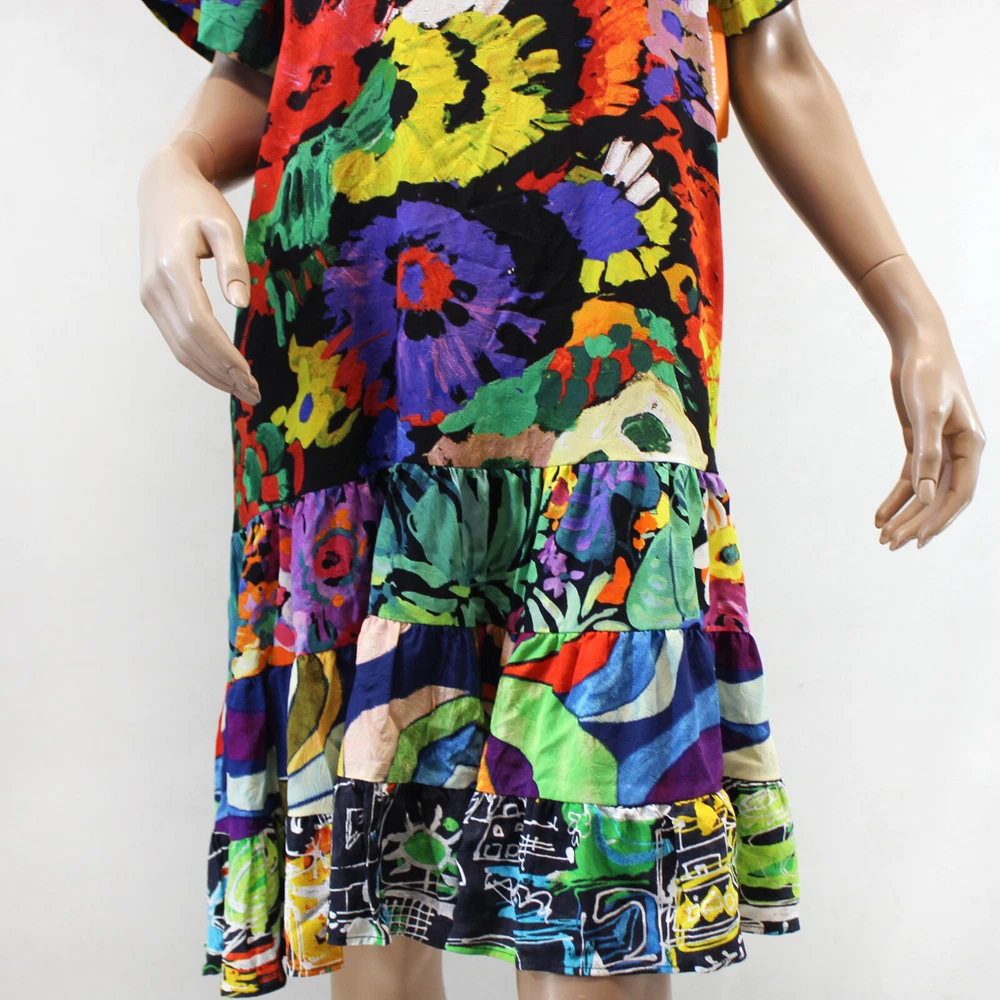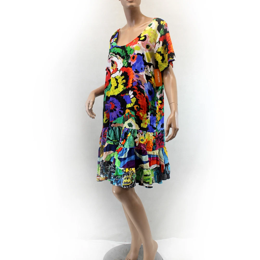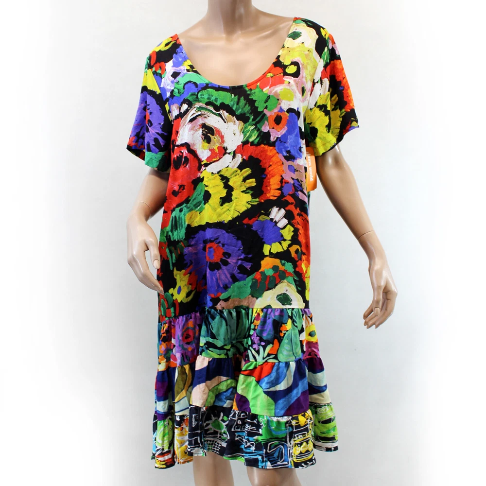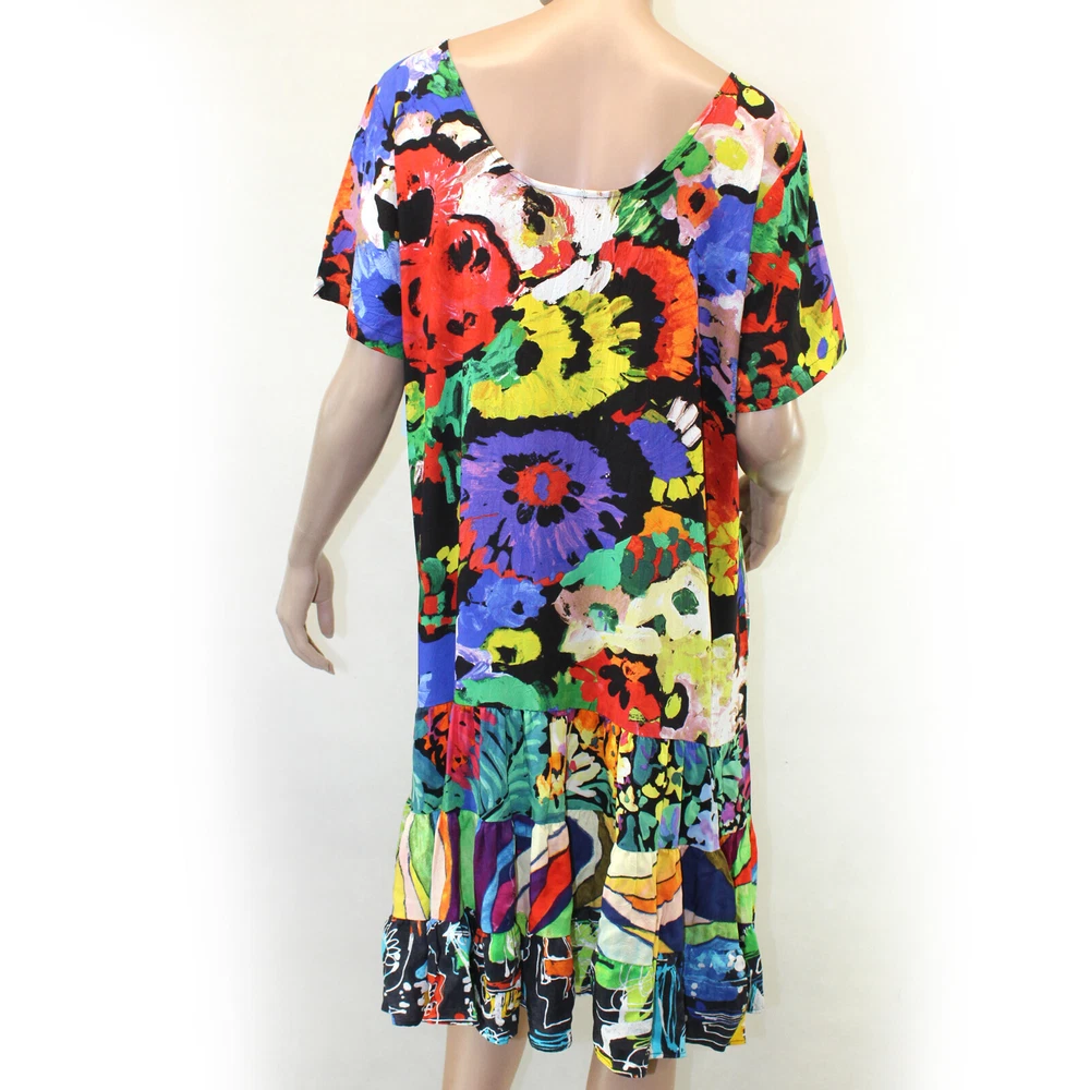 Style: Sundress Occasion: Casual, Party/Cocktail, Summer/Beach Closure: Dress Sleeve Type: Cap Sleeve Theme: Flower, Hawaiian, USA Size: XL Color: Multi-Color Brand: Jams World Character: FLOWER Features: Lightweight Dress Length: Short UPC: Does not apply Accents: Ruffle Vintage: No Garment Care: Machine Washable Country/Region of Manufacture: United States Pattern: Floral Material: 100% Rayon Size Type: Regular Department: Women Fabric Type: Rayon Sleeve Length: Short Sleeve Season: Fall, Spring, Summer Neckline: Crew Neck gtin13: Does not apply