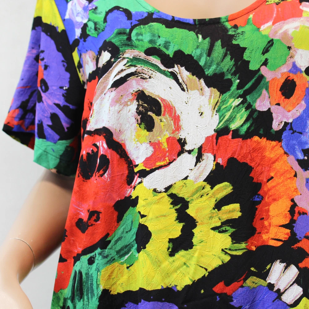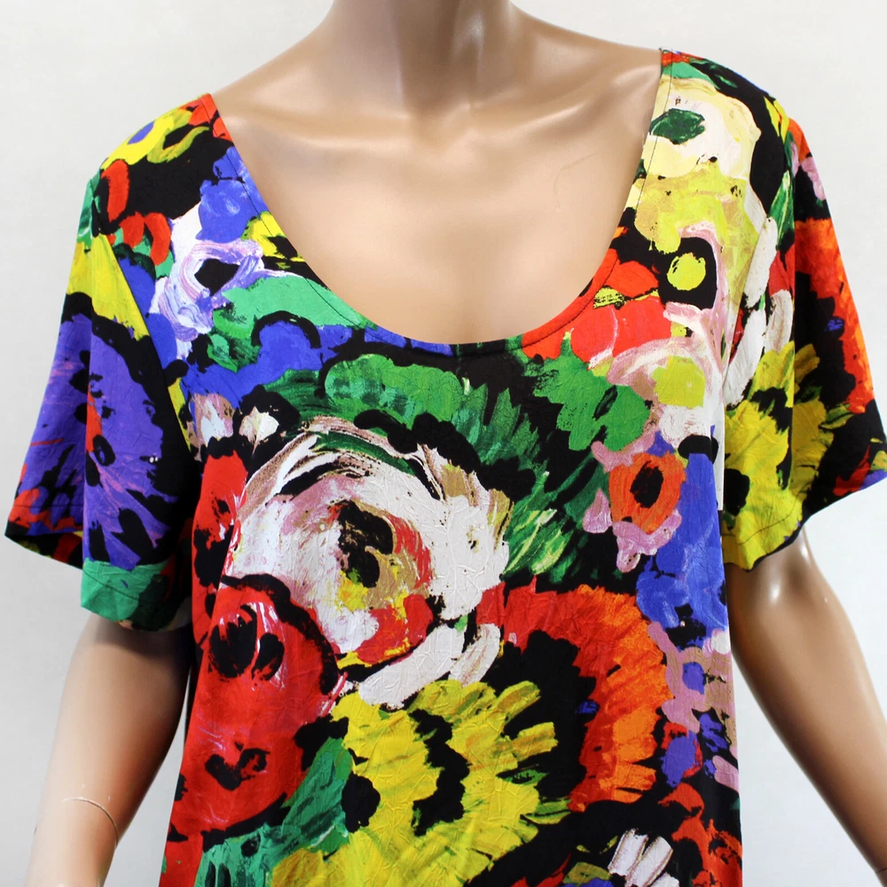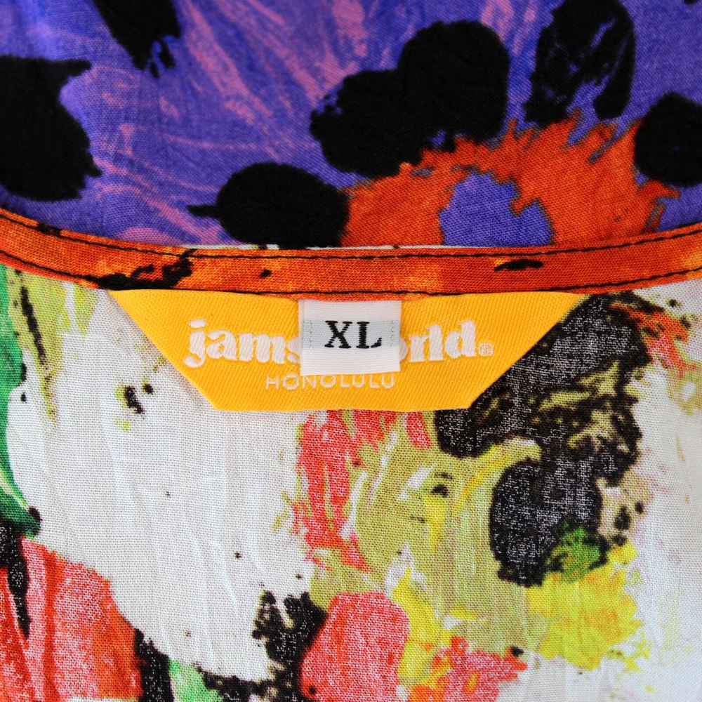 Great Clothes for Real People - Made in Hawaii, Always Jams World celebrates over 50 years of color, freedom, difference, and love. Great clothes that transcend markets and seasons. The art is screened in long lasting, stay true color on exclusive 100% Spun Crushed Rayon. The fabric keeps you cool and just feels good. Each print has coordinating hand-painted buttons created just for Jams World by a California artist. The collection must be seen and felt to truly appreciate Jams World's commitment to quality, individuality, and style. Measurements Bust: 42" Waist: 46" Sleeve: 8" Hips: 48" Length: 32" The artistic elements of the print mean that there might be slight variations in the print of each individual item. The colors and design are the same, but precise details may vary slightly. See More Jams World! Subscribe to our monthly newsletter for exclusive deals! International Buyers - Please Note: Import duties, taxes, and charges are not included in the item price or shipping cost. These charges are the buyer's responsibility. Please check with your country's customs office to determine what these additional costs will be prior to bidding or buying. Sales tax is charged for items shipped to the state of CALIFORNIA (9.25%). We are unable to set variable sales tax rates within the state. Sales tax is charged for items shipped to the state of CALIFORNIA (9.25%). We are unable to set variable sales tax rates within the state. Sales tax is charged for items shipped to the state of CALIFORNIA (9.25%). We are unable to set variable sales tax rates within the state.