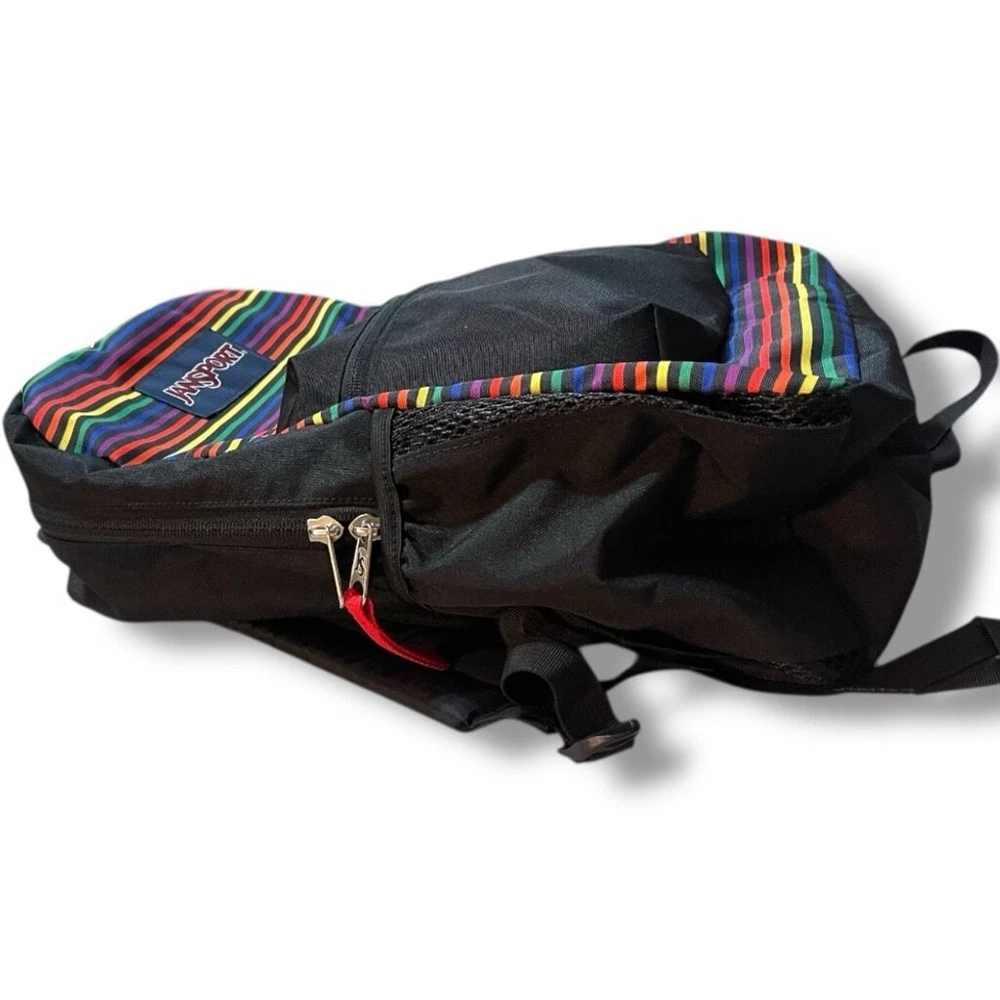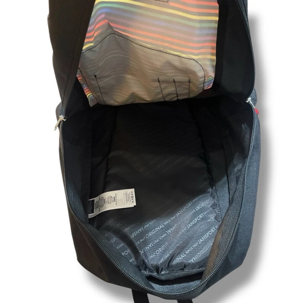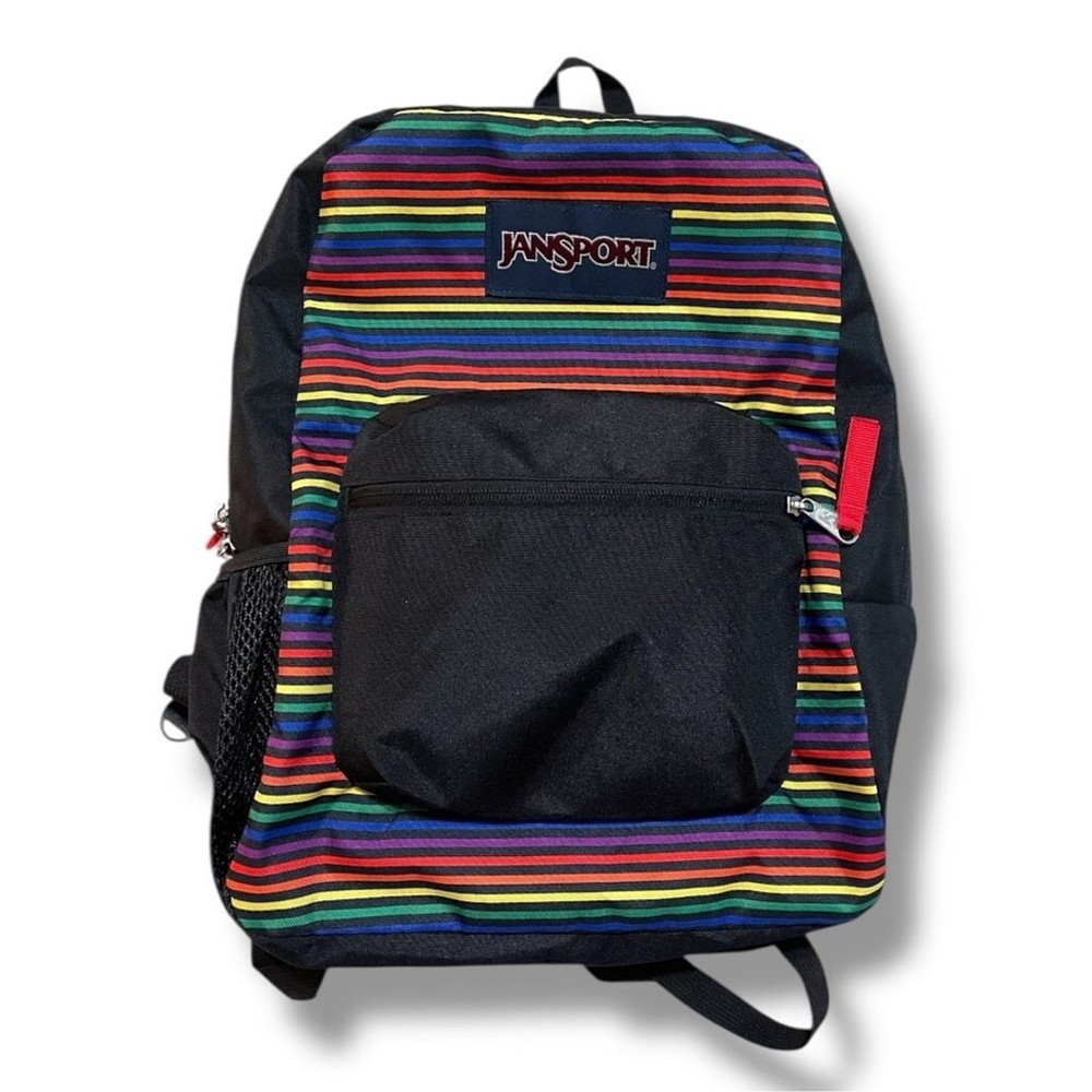 This JanSport backpack features a sleek black design with vibrant multicolor stripes. Perfect for everyday use, it combines style and functionality. JanSport Cross Town Black Multicolor Striped School Backpack 16.5Hx12.5Lx5.5W Features: • Side water bottle pocket • 600-denier polyester construction affords durability • Large main compartment offers ample storage space • Webbing haul handle allows easy carrying • Straight-cut shoulder straps provide comfortable carrying • Padded back panel ensures additional comfort • Water-resistant design helps keep your gear dry Specifications: • Capacity: 26L / 1587 cu in • Dimensions: 16.5" x 12.5" x 5.5" Condition: New without tags! No tears, no stains, no pills, no discoloration, no wear. ALL OFFERS WELCOME All orders ship in 1-3 business days Smoke-free and pet-free home!