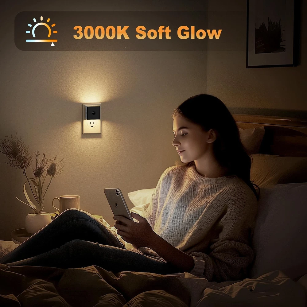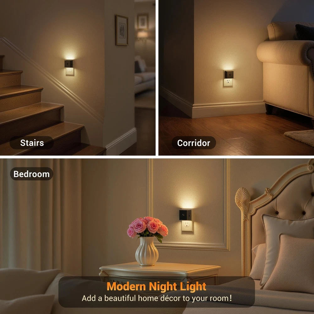 JandCase Motion Sensor Night Light, Lights Plug 2 Pack, Black-Square Description Features: 3 Lighting Modes: This plug in night light features a built-in motion sensor and 3 lighting modes. The "On" mode keeps the light always on; the "Off" mode turns the light off completely. The "Auto" mode activates the light automatically upon detecting motion in the dark (Sensing Range: 3-5M, 120°), and turns it off after 60 seconds of inactivity 3-Level Brightness Adjustable Night Light :Easily adapt to your lighting preferences with the side button, which allows you to select from three brightness levels: 30LM, 60LM, and 100LM. Whether you need a gentle glow for restful evenings or brighter illumination for added security, this adjustable night light meets your diverse requirements Modern and Minimalist Design :Designed with a sleek black frame, this modern night light blends seamlessly with any decor. Its compact and sophisticated appearance ensures it doesn't obstruct the bottom outlet, making it both stylish and functional for any room Safe and Energy-Efficient Night Light :With a maximum power consumption of just 1W, this LED night light is highly energy-efficient, helping you save on electricity bills. Its low energy usage makes it a safe and reliable choice for long-term use in your home Versatile and Warm Illumination :Perfect for a wide range of applications, this dimmable night light creates a cozy and inviting atmosphere in bathrooms, bedrooms, living rooms, kids' rooms, hallways, and stairways. Its warm glow ensures comfort and safety while enhancing the ambiance of your space Product Details: Handling We will ship all orders within 3 business day of payment. Delivery We Do Not Ship Outside of the Continental US. Return Policy All items qualify for returns within 30 days of receipt. Buyer is responsible for return shipping on any item that is not damaged. Feedback We take our reputation seriously, we buy and sell online, so we understand the value of trust. If you are unsatisfied with your order, please contact us and we will work with you to resolve it to your satisfaction.