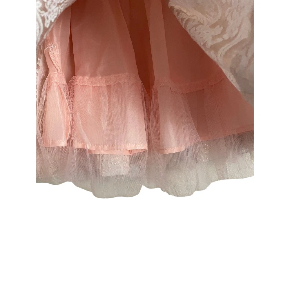 Dress Ivory Cream Satin and Lace Pink Rosettes Size 5 Expressions