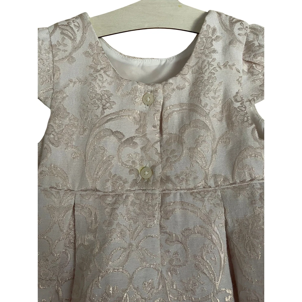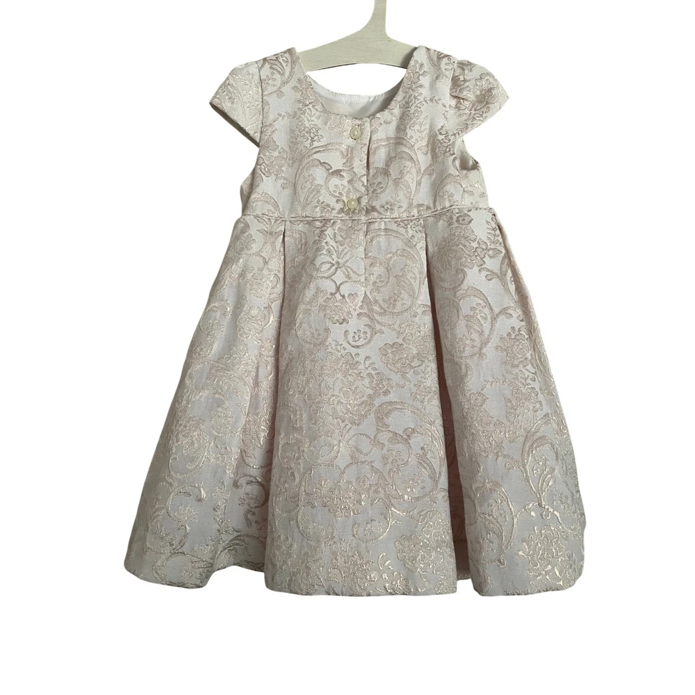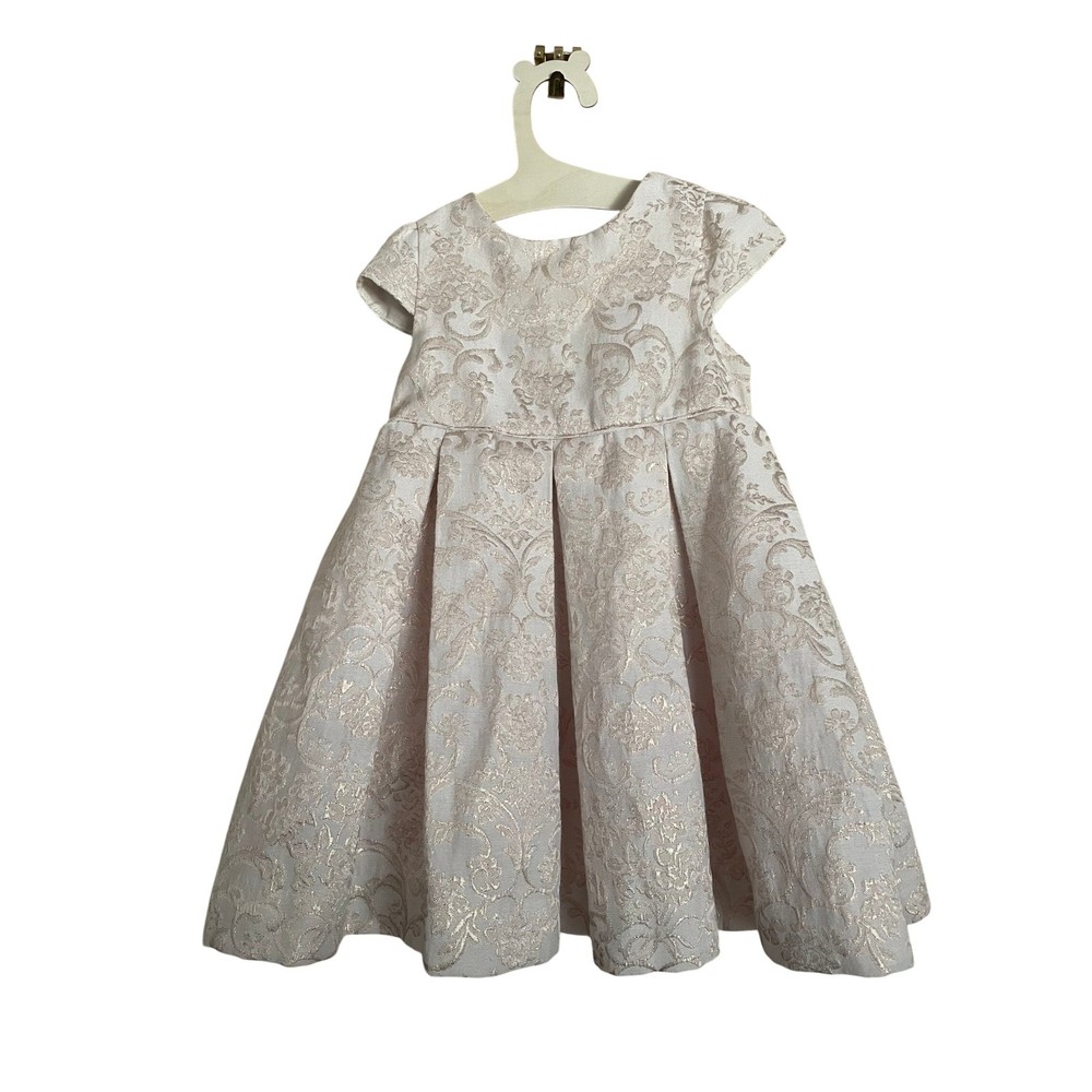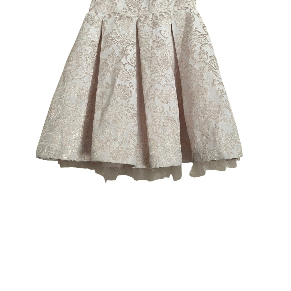 Wedding, Flower Girl, Regency, Tulle, Ballet, Floral, Toddler, Party, Preppy, Old Money, Event, Coquette Style: Fit & Flare Dress Length: Knee Length Department: Girls Theme: Princess Sleeve Length: Short Sleeve Occasion: Party, Formal Fabric Type: Jacquard Pattern: Floral Season: Spring, Fall Material: Polyester, Metallic, Fabric, Polypropylene Neckline: Round Neck Sleeve Type: Cap Sleeve Closure: Button Keywords: holiday, party, special occasion, brocade, damask, metallic, pleated, tulle, flower girl, Easter, Christmas, formal, evening, cocktail Measurements: Armpit to Armpit: Length: Sleeve Length: Flaws: From Pet Friendly Smoker Free Home