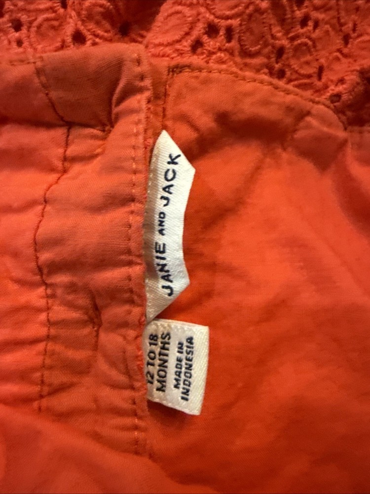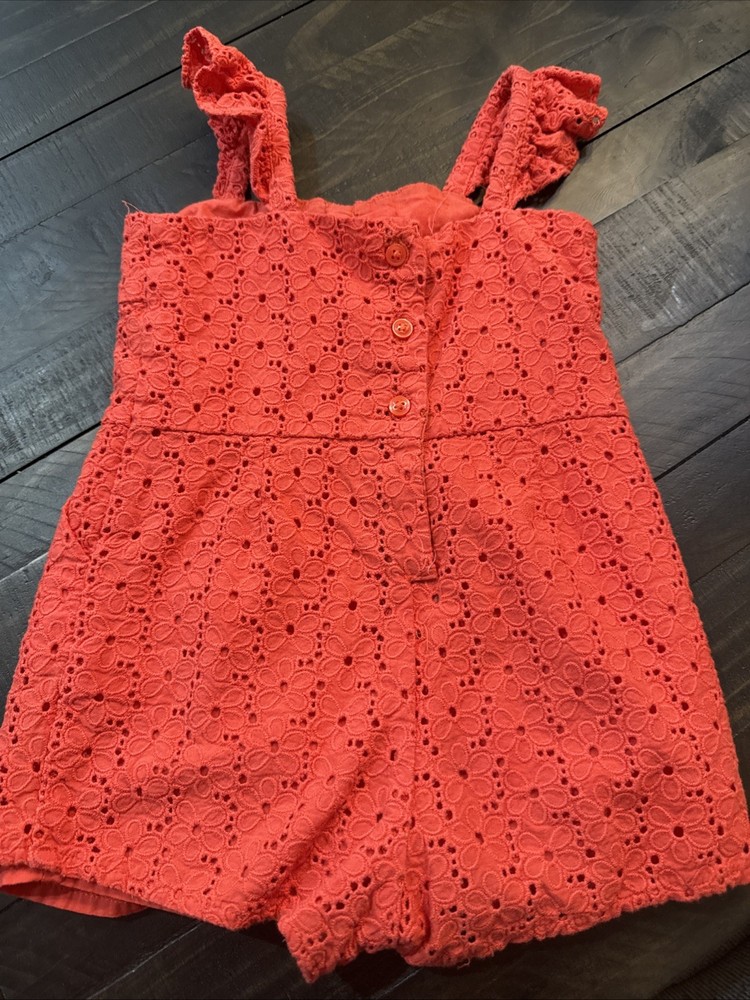 Type: One-Piece Vintage: No Handmade: No Color: Red Occasion: Casual Number of Pieces: 1 Piece Sleeve Length: Sleeveless Department: Girls Season: Spring, Summer Brand: Janie and Jack Material: 100% Cotton Personalize: No Style: Romper Accents: Ruffle Size: 12-18 Months Garment Care: Machine Washable