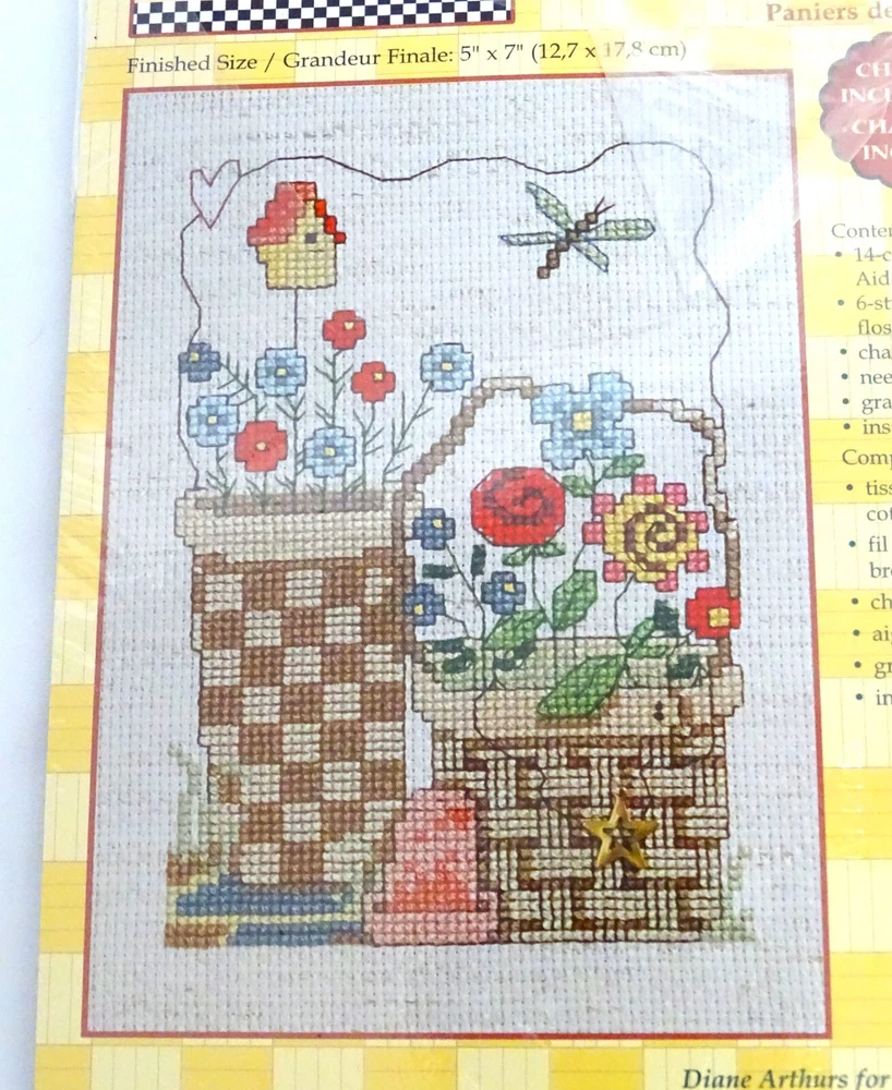 Vintage Janlynn's Garden Charms Cross Stitch Kit #027-0117 Flowers Birdhouse NIP Finished piece will be 5" x 7" All supplies included. Plastic covering kit is torn in the front but has never been removed, kit is completely new.