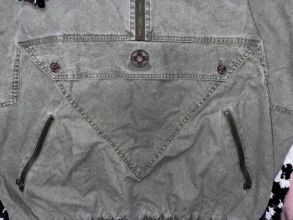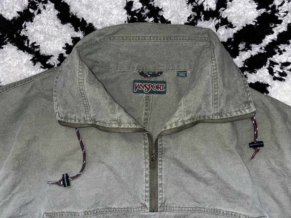 This vintage JanSport anorak is khaki green color anorak style. The jacket is sized XL, but fits more like a large.