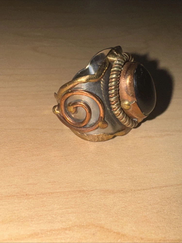 Add a touch of elegance to your style with this stunning Janya Black Onyx Silver plated brass Cuff Ring from India. This adjustable ring is crafted with high-quality materials that ensure durability and long-lasting use. The beautiful black onyx stone adds a touch of glamour to any outfit, making it perfect for both casual and formal events. The silver-plated brass cuff ring features a unique design that is sure to catch the eye of anyone who sees it. Made in India, this ring is a true work of art that combines traditional and modern elements. The adjustable feature ensures that the ring fits comfortably on your finger, making it an ideal accessory for any occasion.