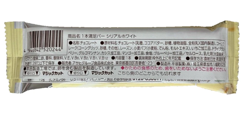 Please Note: Chocolate may melt at temperatures above 28°C during transit. Temperature changes can cause "blooming," a white layer on the surface. This does not affect the quality or taste. For best results, store in a cool, dry place after delivery. Storage Instructions: Store below 28°C and avoid direct sunlight. "Enjoy Even More When Chilled!" Experience the unique quality of Japanese chocolate by chilling it before enjoying.The cool temperature enhances the rich sweetness and smooth texture, making each bite even more delightful.Treat yourself to a special moment with the exquisite taste of Japanese chocolate! 【Product Description】 This cereal-type chocolate bar offers a quick and satisfying way to replenish nutrients, combining delicious flavor with a hearty texture. Coated in creamy white chocolate, it features a crunchy cereal base accented by the refreshing flavors of six fruits: strawberry, blueberry, blackcurrant, cranberry, raisin, and mango. Ingredients / Additives: Chocolate (Lactose, Cocoa Butter, Sugar, Vegetable Oil, Whole Milk Powder) (Manufactured in Japan), Cornflakes (Corn Grits, Sugar, Other Ingredients), Raisins, Wheat Puffs (Wheat Flour, Starch, Malt Extract), Strawberry Product, Dried Cranberries, Glucomannan, Blackcurrant Product, Mango Product, Salt, Blueberry Product / Cellulose, Emulsifier (Soy-derived), Disodium Phosphate, Flavoring, Acidulant, Vitamin E, Vitamin B6, Vitamin B2, Vitamin B1, Vitamin B12 【What Sets Us Apart】 We source our products from a long-established confectionery wholesaler in historic Kyoto and deliver the latest items. After receiving your order, we procure the freshest stock from the wholesaler's inventory and ship it to you. We carefully pack your order to prevent any damage, using the smallest possible packaging size for safe delivery. 【Notice】 The package design may vary slightly depending on the timing of procurement. 【Shipping Notice】 We ship via international tracked shipping, but please note that international delays may occur. Feel free to contact us if you have any concerns. 【Bulk order:】 If you want to buy more than listed. Please contact me via message! 【Dear International Buyers】-Please note- Import duties, taxes and charges are not included in the item price or shipping charges. These costs are the responsibility of the buyer. Please check with your country's customs office before purchasing to find out how much these additional charges will incur. These charges are usually collected by the carrier at the time of delivery or pick-up of the item. Not to be confused with additional shipping charges. We do not declare anything below the price of the product, nor do we declare it as a "gift". U.S. and international government regulations prohibit such behavior.