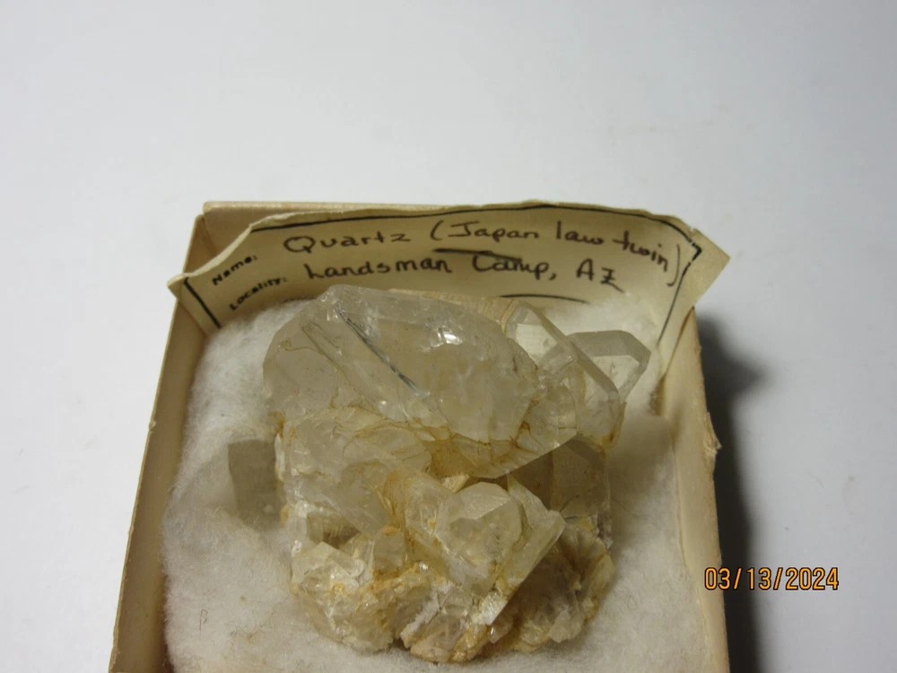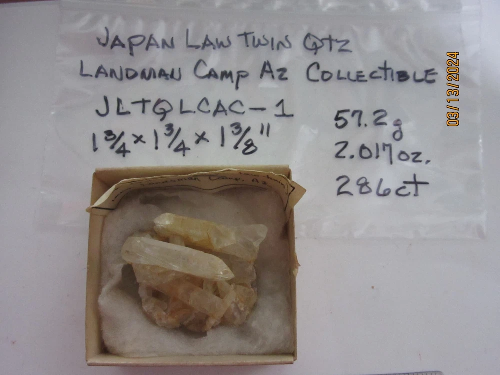 This Japan Law Twin Quartz Cluster Landman Camp Arizona 1 3/4" Collectible is about 1 3/4 x 1 3/4 x 1 3/8 inches and weighs about 52.7 grams, 2.017 ounces, or 286 carats. This comes from my own collection and I purchased it back in the 1990's while on vacation in Arizona. I do combined shipping. Japan Law Twin shares the same energy of all quartz crystals, as well as any inclusion it may contain (smoky or citrine). As one continues to work with this unique mineral, they will see the enhancement and enlightenment they receive as they channel the benefits of the twins. One’s mind is able to maintain a sense of clarity while cementing your place in the spirit realm. Instill all the trust you carry in this crystal and allow it to be the changing factor in your life as you follow your soul’s mission.