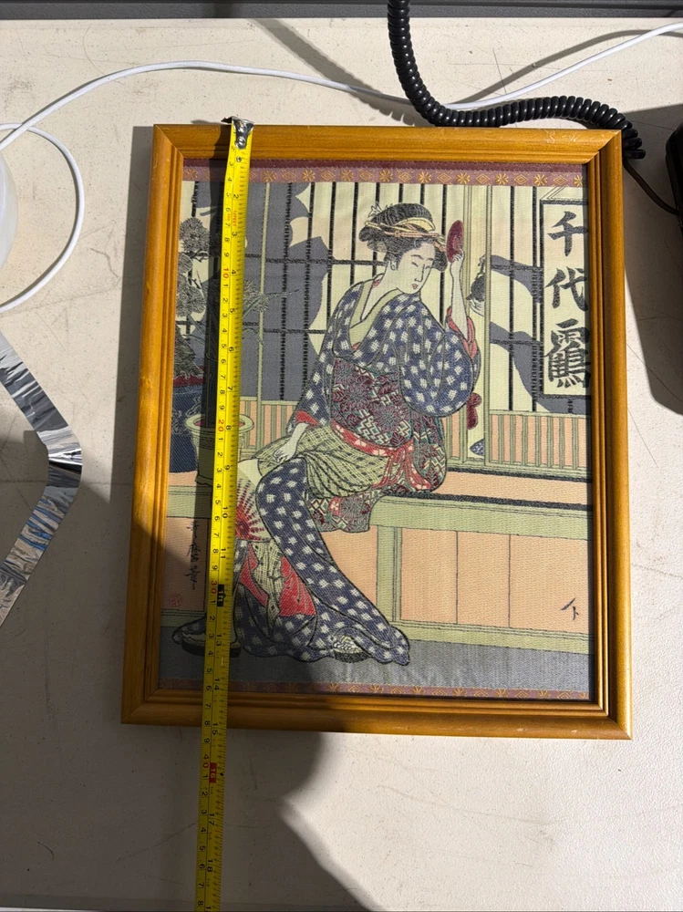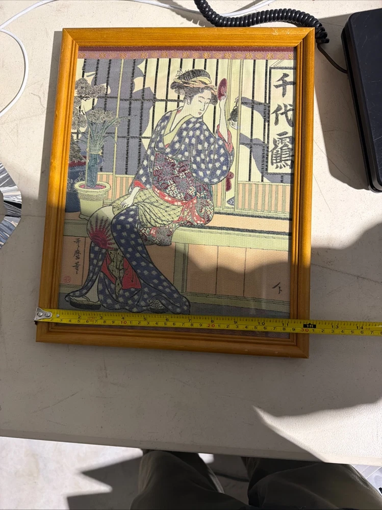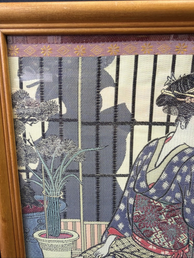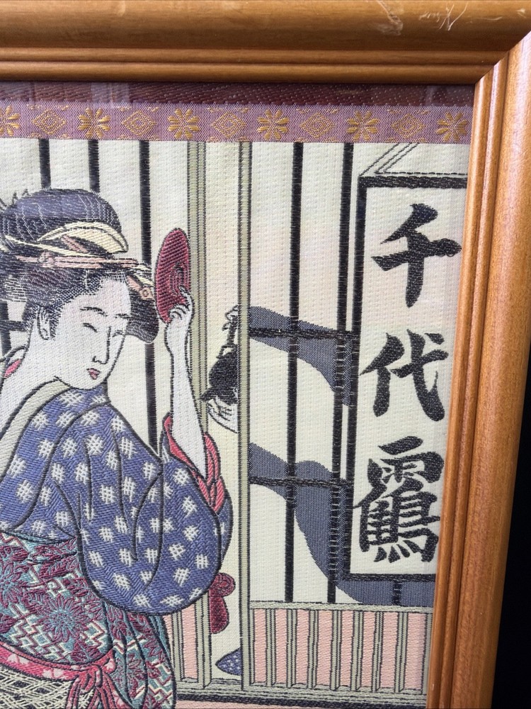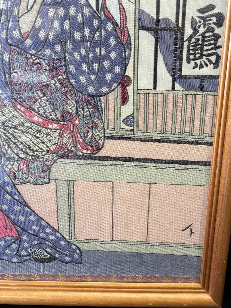 This item has not been authenticated by any third parties or independently by Riverside Rough Cut LLC we make no implied promises or guarantees on its authenticity. This is an unknown item purchase at your own discretion and risk. This could possibly be a late 19th Century Kitagawa Utamaro Japanese Geisha Silk Needlework (Hari-Shigoto) Size is 15"x12"