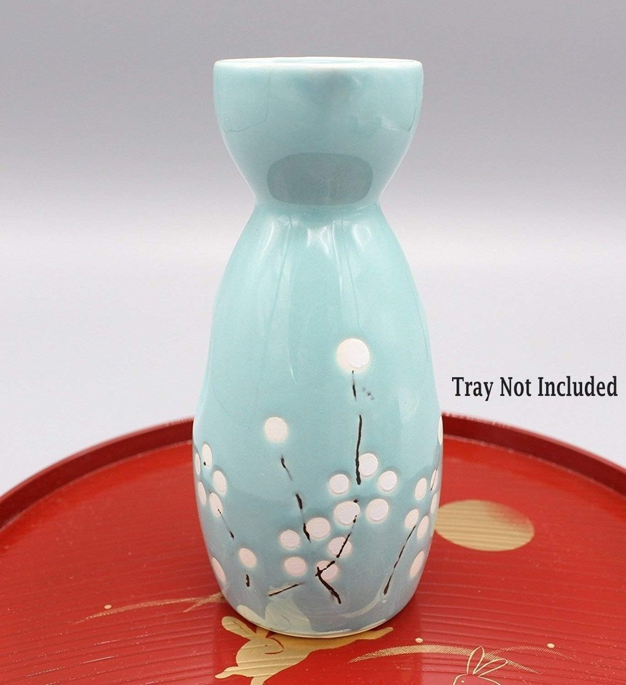 The sake bottle (TOKKURI) is made of ceramic that is safe to put in hot water or microwave to serve warm sake in a cold weather. Its narrow neck is designed for retaining heat. Sake cup (OCHOKO) is in vivid green color with flower patterns on ceramic cups. The cup's wide mouth allows for the sake's fragrance to be evaluated. Sake bottle is 5.2" inch high, holds 200 ml and sake cup 1.75" inch high. ~TRAY IS NOT INCLUDED~ Microwave & dishwasher safe. Easy to clean: After using your sake bottle and cups, wash them out with water and let them dry in a well-lit and airy space. Set comes with 1 sake bottle and 4 sake cups which are packed safely in a shockproof gift box! Perfect gift for sake lovers and family on special occasions.