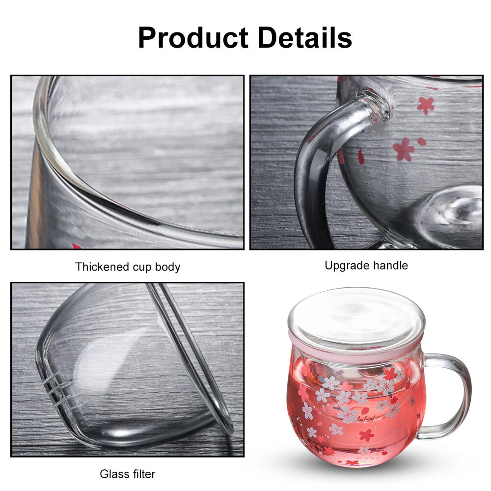 This color-changing Sakura glass cup is absolutely stunning! The delicate cherry blossom design adds a touch of romance to my tea time, and the built-in glass filter makes brewing loose-leaf tea effortless. I love how it shifts colors with temperature—so mesmerizing! The high-quality borosilicate glass feels durable and handles hot drinks perfectly. It’s become my go-to cup for both coffee and tea, and the included lid is a nice bonus. A must-have for anyone who loves floral aesthetics and functional design!