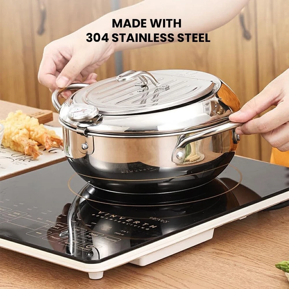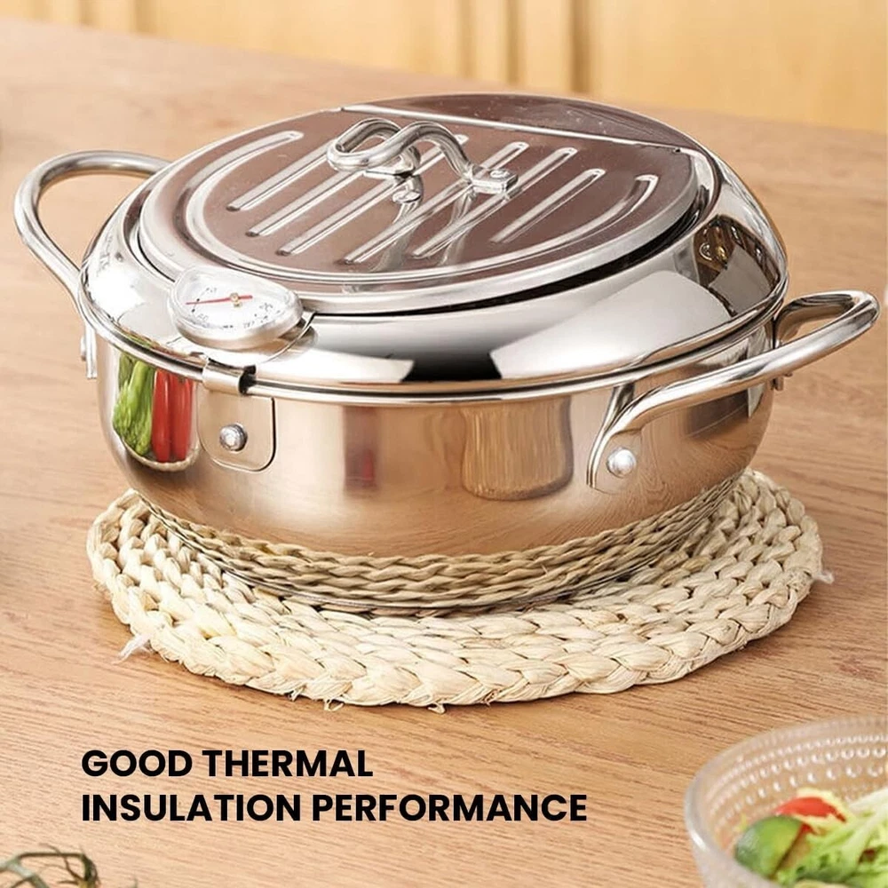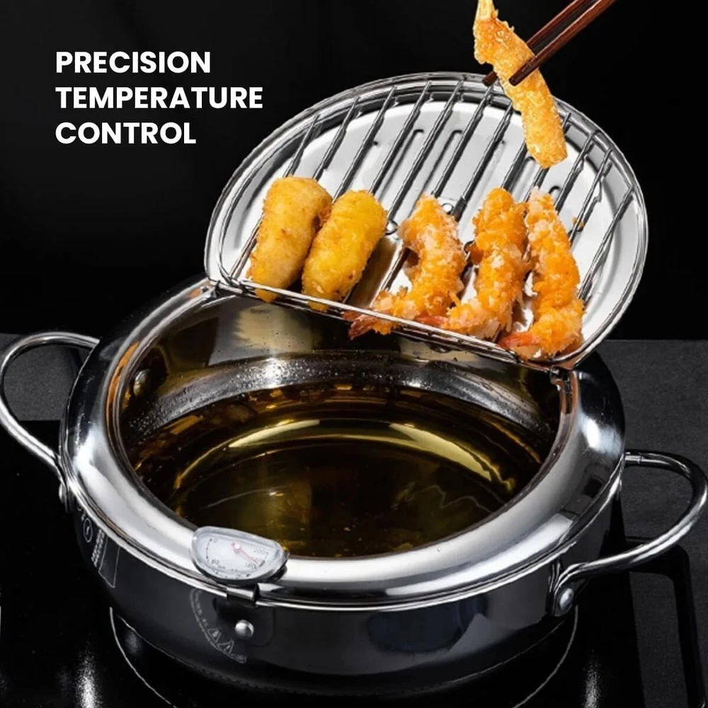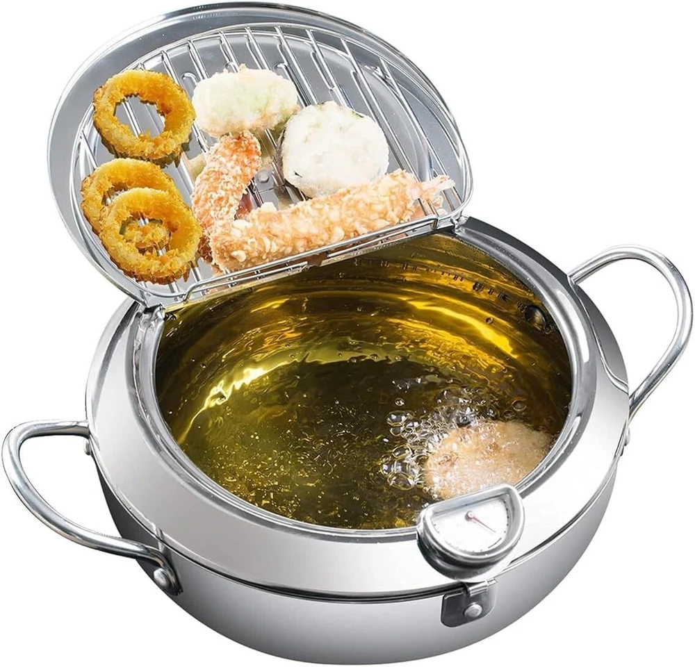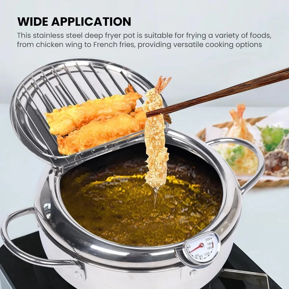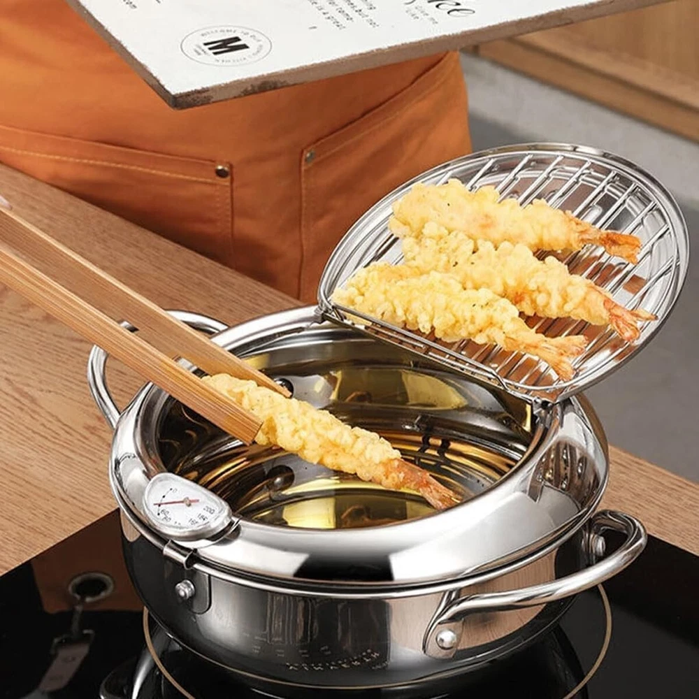 Japanese Deep Frying Pot Tempura Fryer Pan Temperature Control Stainless Steel