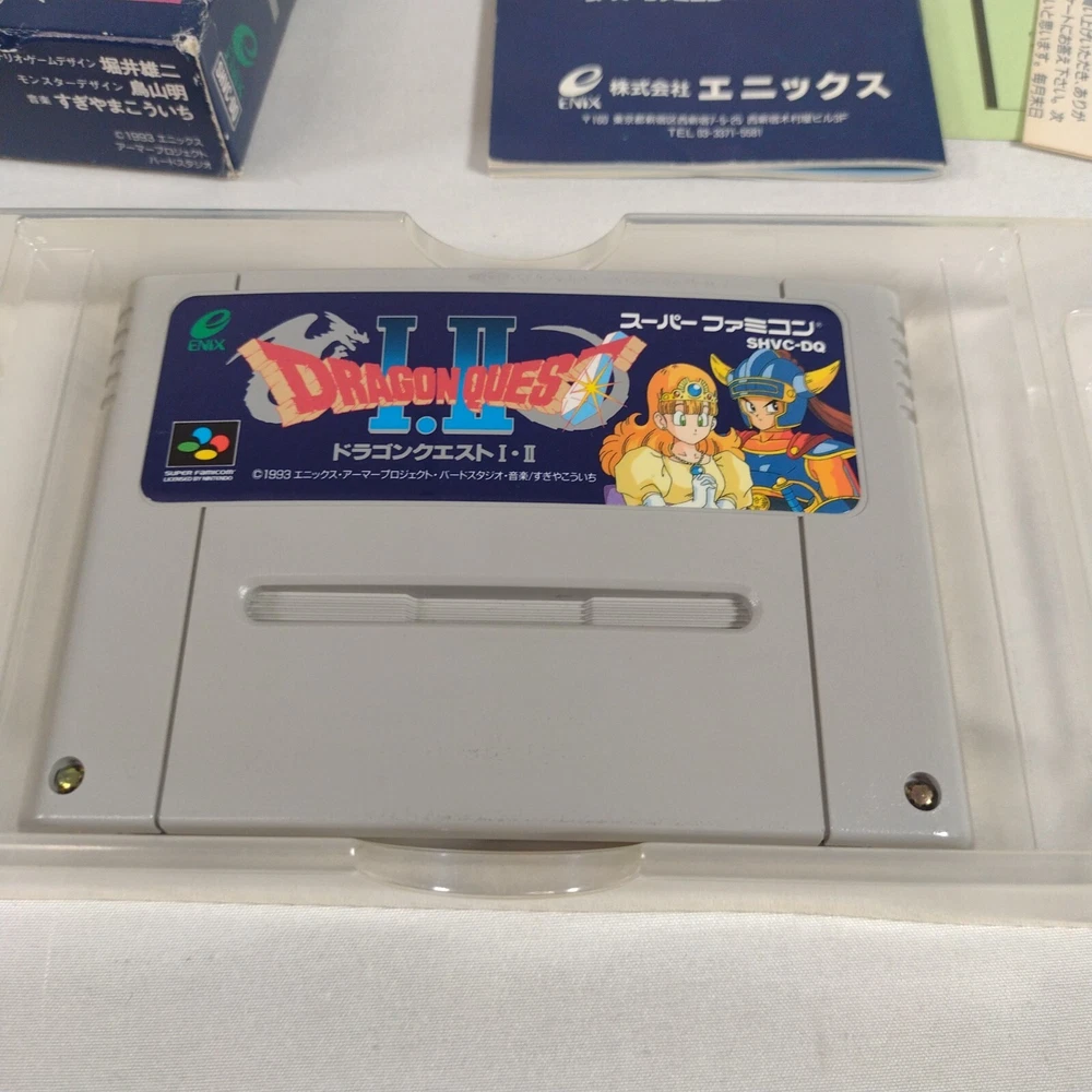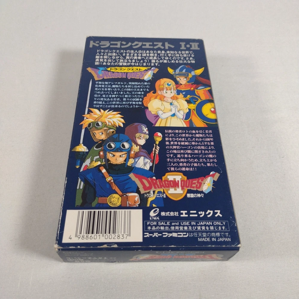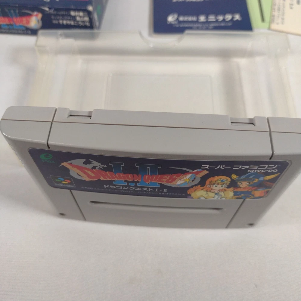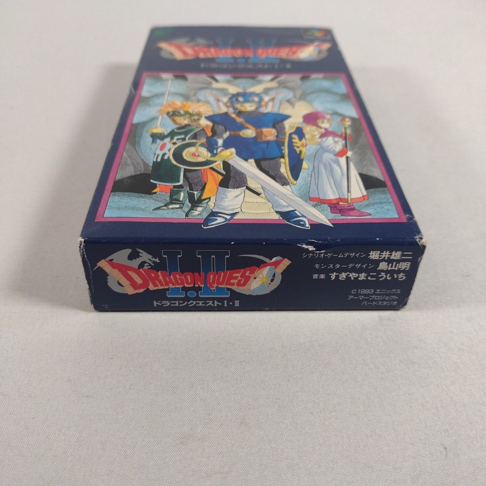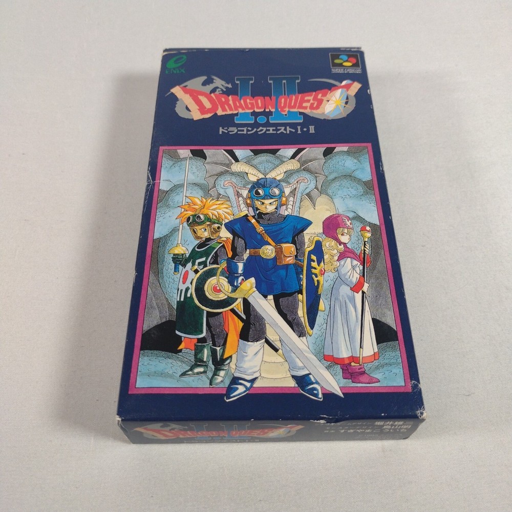 Japanese version Dragon Quest I & II for Nintendo Super Famicom Complete in Box CIB US Seller Includes original box, manual, game cart, and game tray. Please review all photos to see signs of use / wear. Game has been tested and verified working on a Super Famicom System. Original from Japan, Ships from USA.