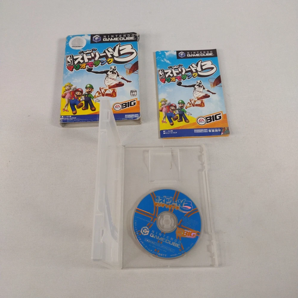 Japanese version Dunk in NBA Street V3 for Nintendo GameCube. Comes with slip cover, case, manual, and game disc. There is some wear on the slip cover as shown in the photos. There may be some light scratches on the disc, but it has been tested and verified working. Please view all photos to understand condition. GameCube games are region locked, you will need a Japanese GameCube or system compatible with Japanese GameCube games to play this. The game has been tested and verified working on a Japanese GameCube. Originally from Japan, ships from USA.