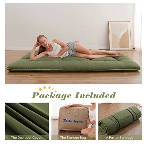 Return Policy Fast Delivery Trusted seller Japanese Floor Mattress, Futon Mattress with Portable Storage Bag and Washable Cover, Roll Up Mattress Thick Tatami Mattress Suitable for Camping, Guest Room, Green, Queen Product Description Important Note: We compress the mattress into a storage bag for simple transportation. When you open the package, t could be some creases on the mattress's surface after opening. Please expose the mattress to the sun for 2-3 days so that it can regain its fluffy form Fabric: Microfiber / Filling Material: Polyester & Memory Foam. Queen Size: 60" wide x 80" long | Weight: 14.5lbs Care Instructions: Buy a futon mattress, you can get the 1 same color mattress dust-proof cover, 1 pair of bandage, 1 canvas storage bag. With the dust cover, you don't have to wash the entire mattress; simply remove the dust cover and wash it. Simply fold it up and store it in the provided storage bag when not in use. It's easy to transport or store in a closet or other storage area Excellent Quilting and Comfy Filling: When you sleep, the futon's memory foam can provide adequate support while still allowing for some sinkage. Quilted craftsmanship will ensure even weight distribution without lumps and dips Variety of Uses: The floor mattress can be used as a futon in the bedroom, a living room futon, a tatami mat, a floor mattress, a sleeping floor mat, a tent mat, a guest mattress, or a Japanese bed mat. And you may take it with you everyw you go in your car Shipping Returns Payment Shipping Shipping is FREE to all addresses other than APO/PO boxes in the lower 48 states. All our stock ships from US-based warehouses. Shipped via USPS or UPS (depending on location and package weight) Unless stated otherwise, all orders will ship within 24-72 hours of your payment being processed. Check our feedback to see the great reviews of FAST shipping we offer. Returns Seller does not accept returns Payment We currently accept payment via eBay managed payments only. Once payment is cleared, we will dispatch your shipment within 1-3 business days. Please refer to the "Shipping" tab for more information regarding shipping speed to your destination.