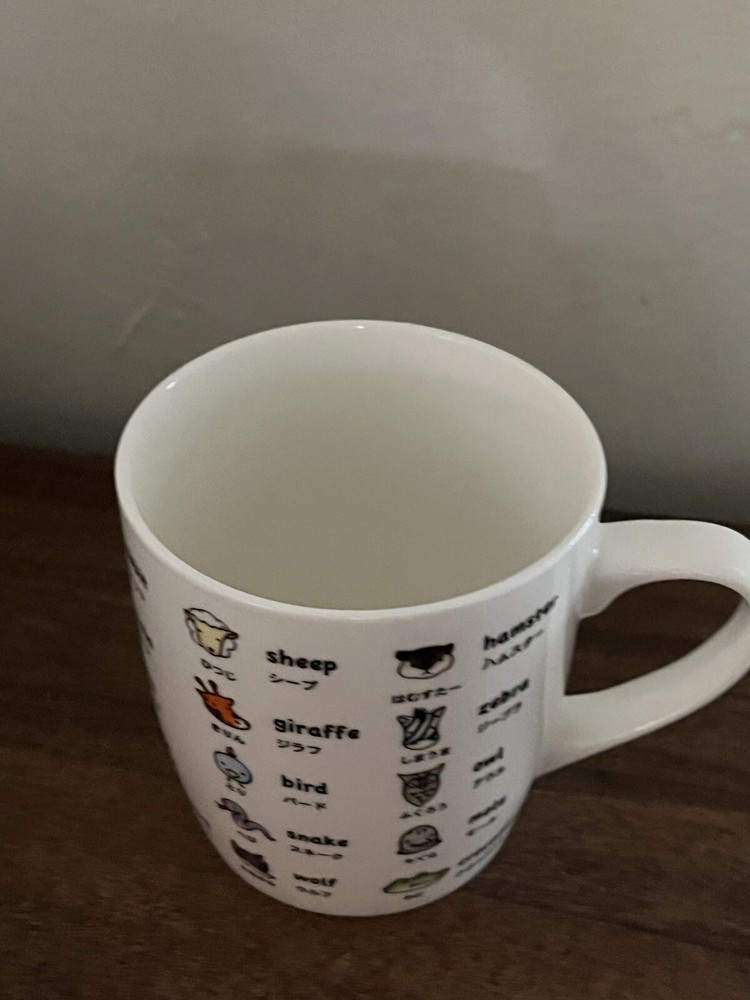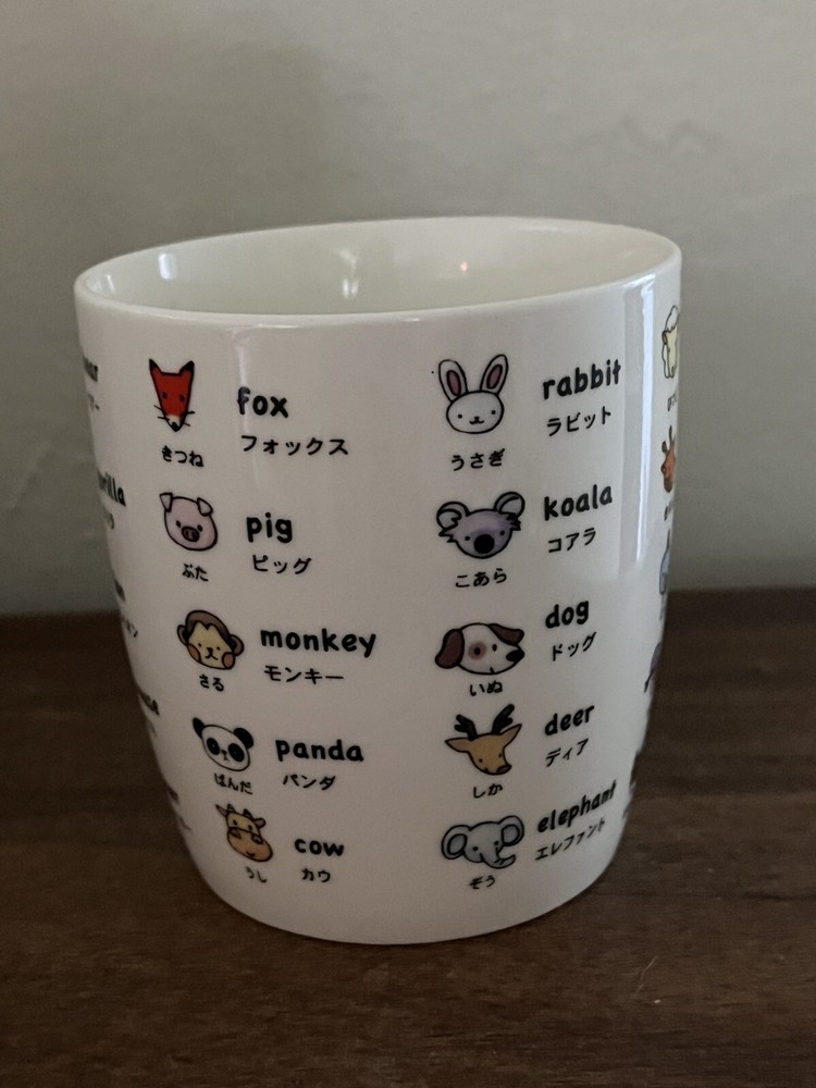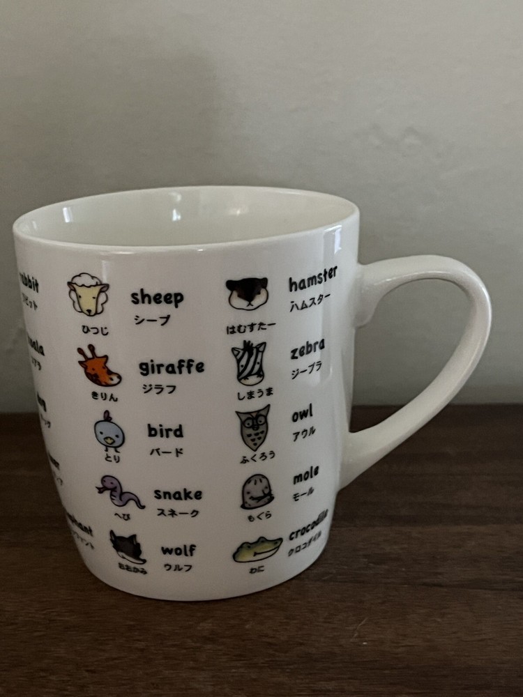 Japanese Kawaii Animal Ceramic Coffee Mug with Katakana Design Preowned