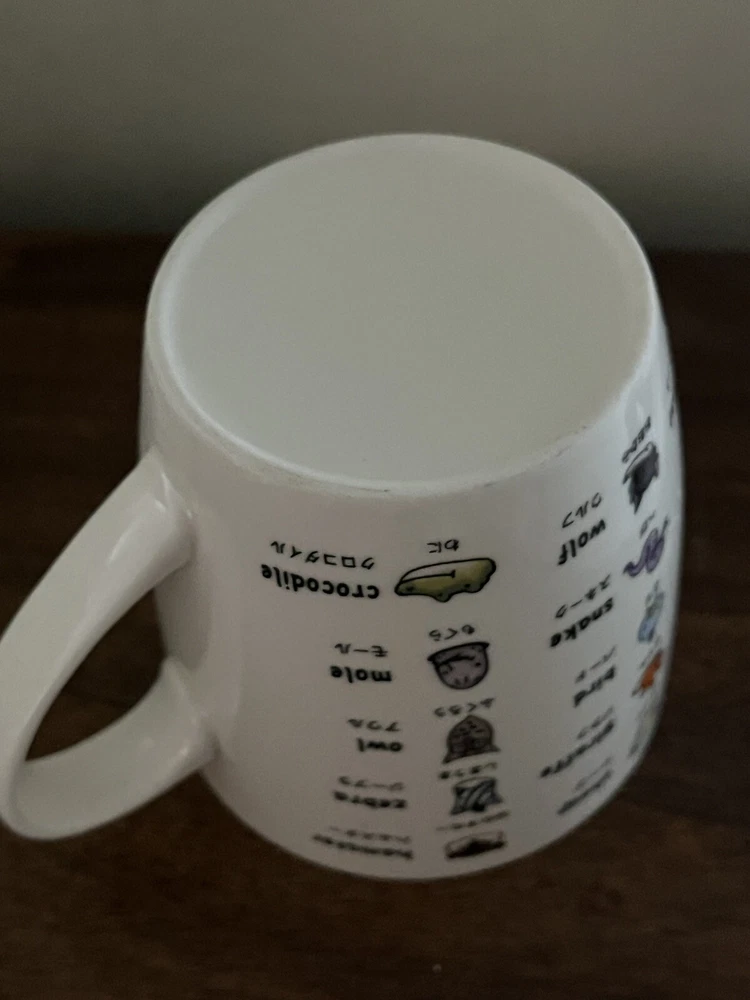 HomeJapanese Kawaii Animal Ceramic Coffee Mug with Katakana Design Preowned