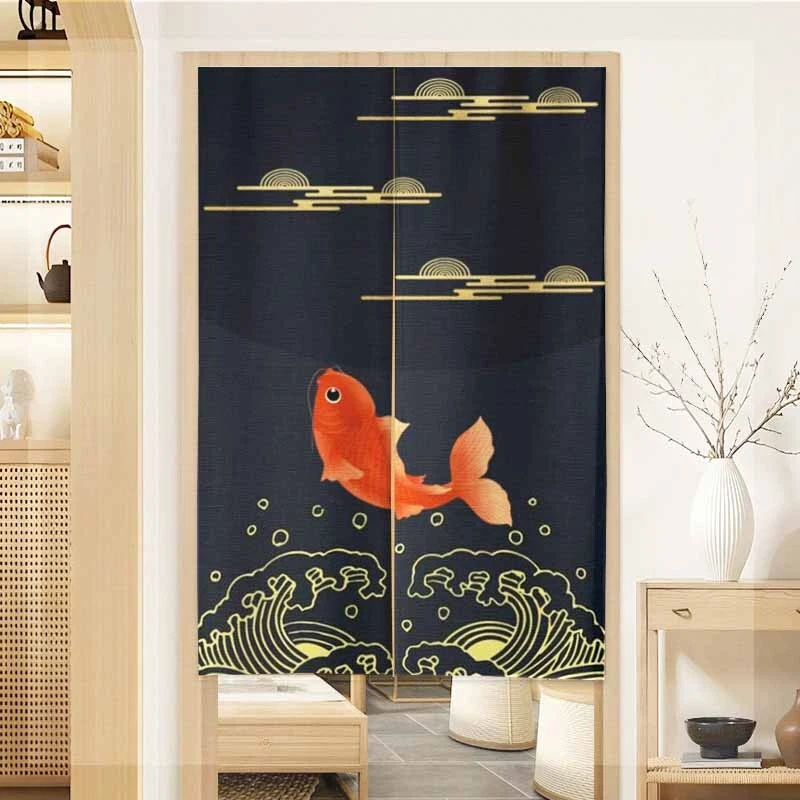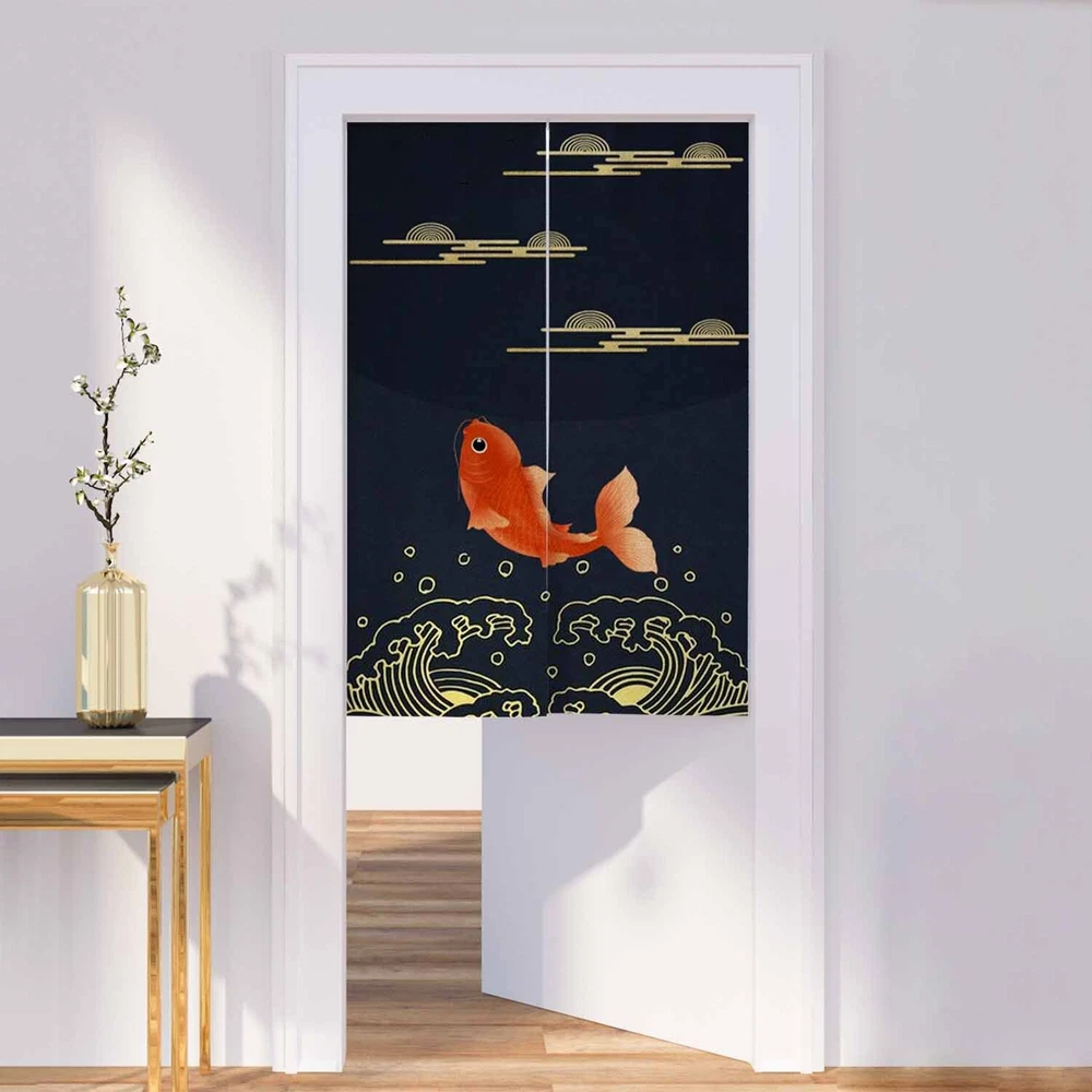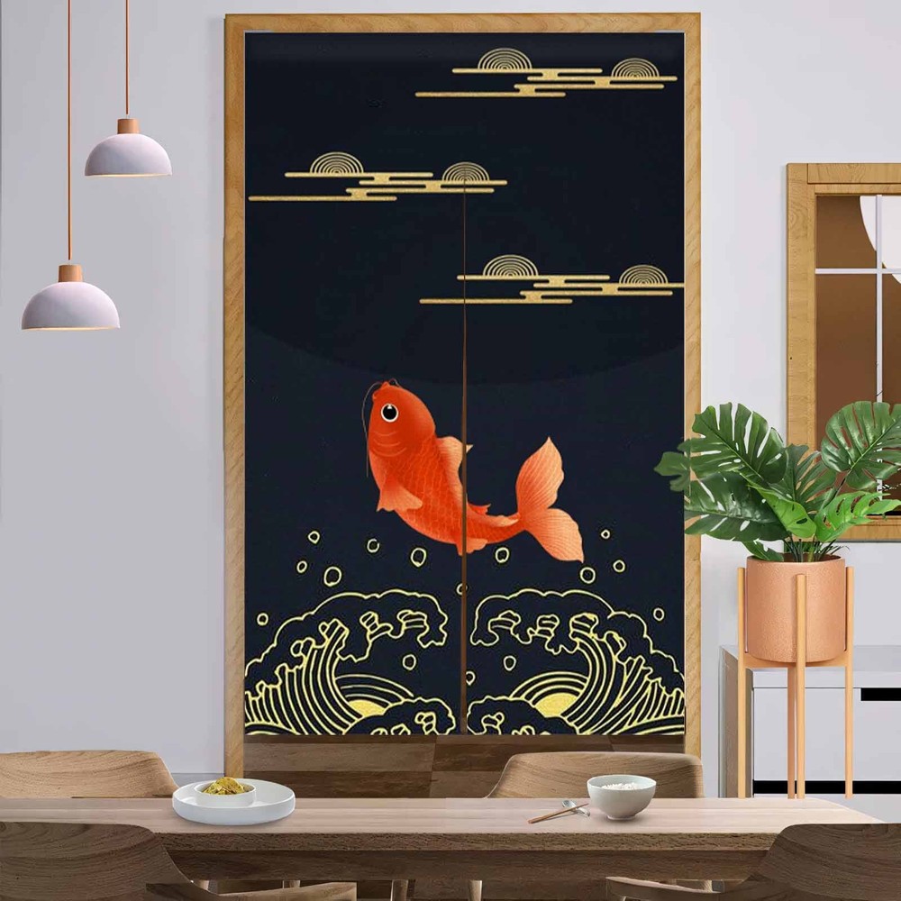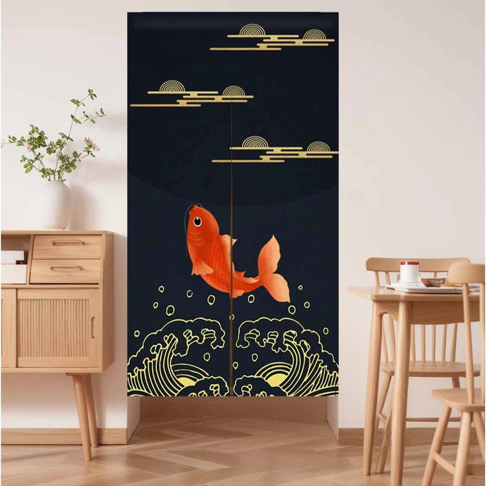 Japanese Big Wave Koi Fish Noren Curtain for Doorway Kitchen or Restaurant Decor
