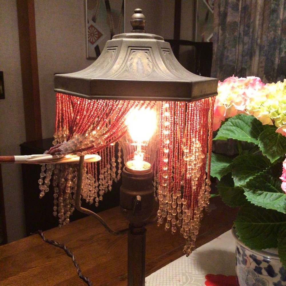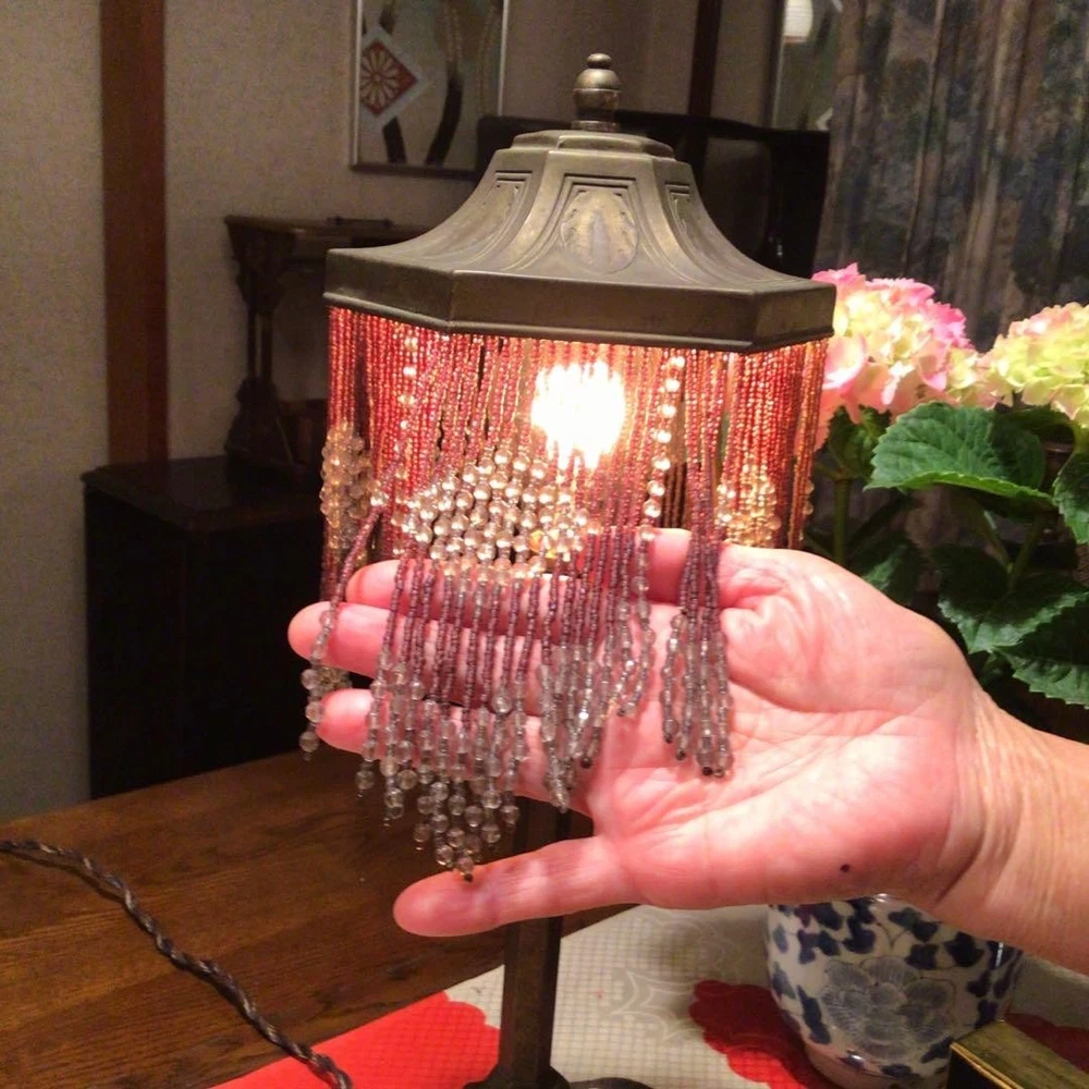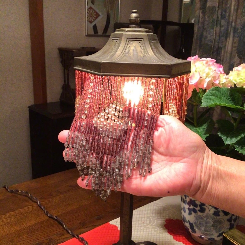 Japanese Kutani Ware A823 Antique Taisho Roman Showa Retro Bead Lamp Period Item