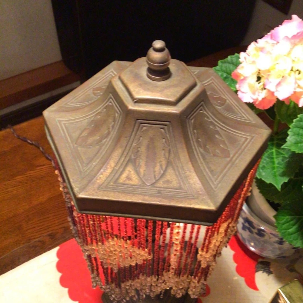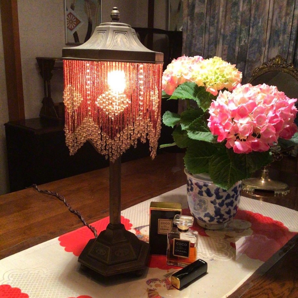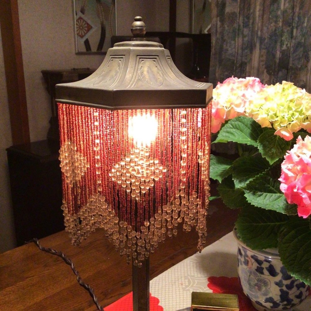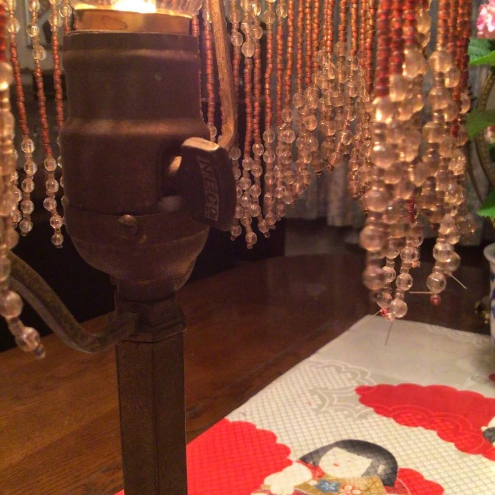 Japanese Kutani Ware A823 Antique Taisho Roman Showa Retro Bead Lamp Period Item