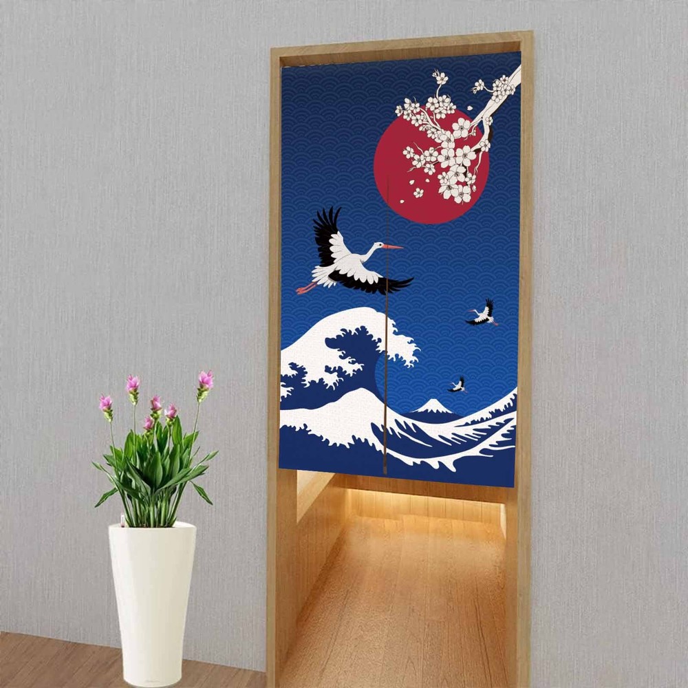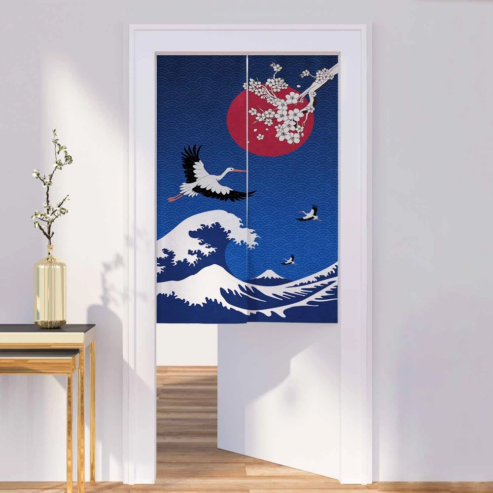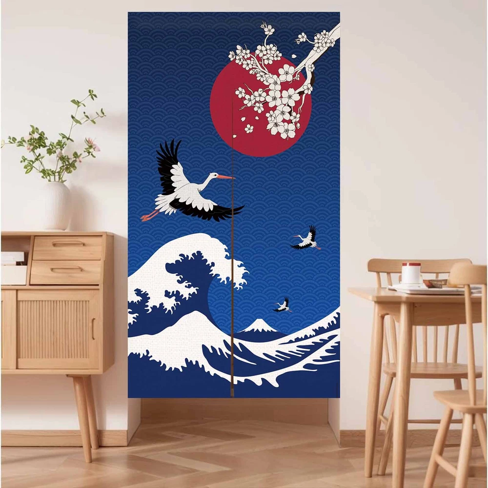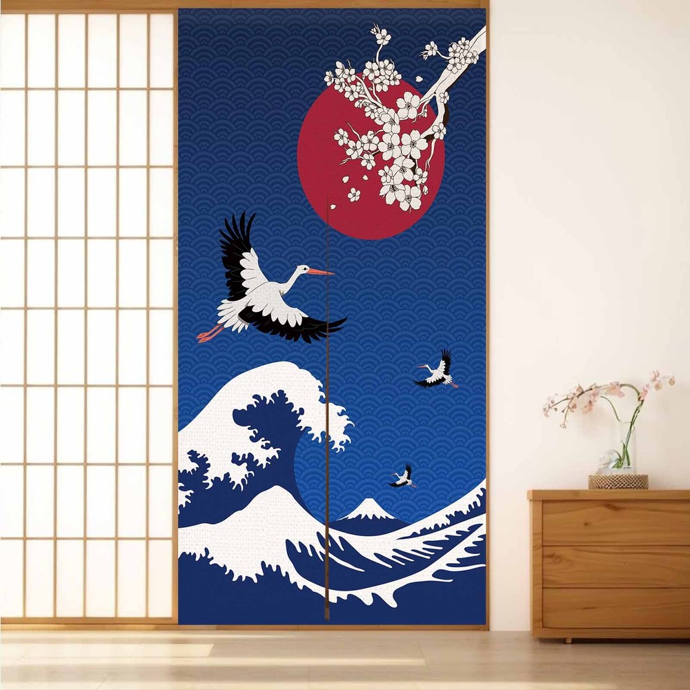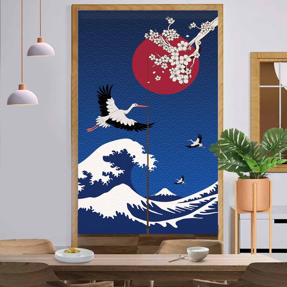 Japanese Noren Doorway Curtain Great Wave Cranes Cherry Blossoms Home Decor