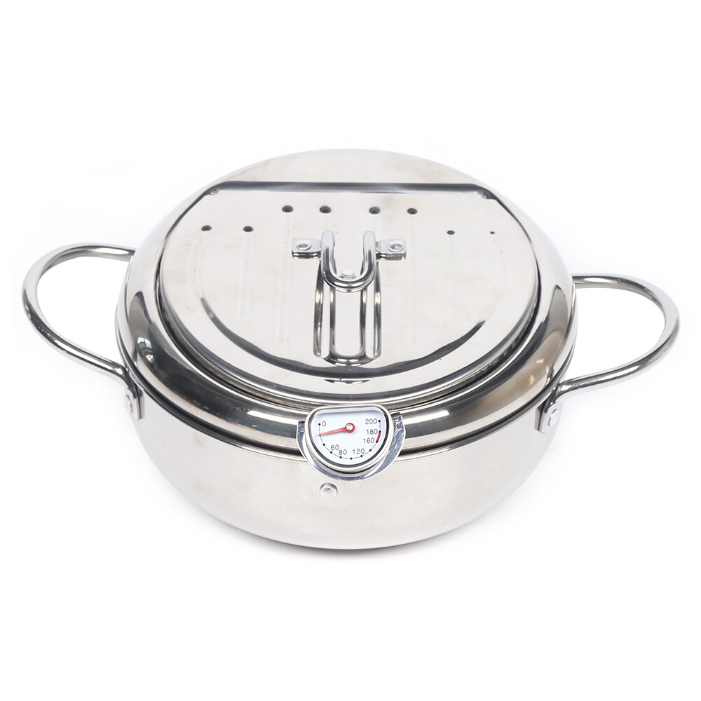 This Japanese-style deep frying pot is a game-changer for crispy, perfectly cooked tempura and fried foods! The built-in thermometer ensures precise temperature control, while the high-quality 304 stainless steel construction makes it durable and easy to clean. Its compact 2.2L size is ideal for home kitchens, and the sleek silver design looks great on any stovetop. No more guessing—just golden, restaurant-quality results every time. A must-have for frying enthusiasts!