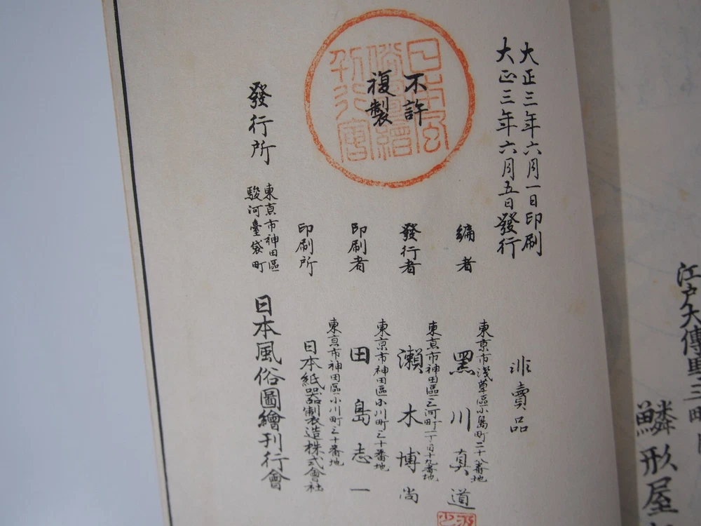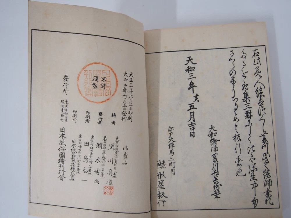 Bookstore situated in Tokyo, Japan. Selling varieties of Japanese cultural products like woodblock print, old manuscript, catalog and other. Feel free to have a look at our store! Our staff in charge will respond to any question in English, French or Japanese, so please do not hesitate to message us about our listing, purchase method or anything else we can help with. Description Original Title: 日本風俗図絵 For items condition please see photos and comment. Please understand that we occurred a simple check so there might be little oversight. We try to photograph and describe the condition as accurately as possible. Although, the condition of the item may be felt worse than our description due to individual subjectivity. Payment & shipping Please pay the item within 7 days of purchase. Combined shipment: send us a "request total" mail, we will send an invoice with accurate fees. We usually ship the item within 3 business days after your payment clears. Expedited: DHL Express (Fastest delivery) Delivery within 3-7 days. Will be tracked. Economy: Surface mail (Delivery at the lowest price) deliver in approximately 2 months. (cannot be selected, contact us for invoice) Recommended for bulk order. Japan user: Yamato home delivery service The number of days for delivery is an estimation. Please understand that the number of days may vary depending on the transportation, customs clearance, local handling, etc., and it may take longer than the number of days written above. Please understand that depending on the region, there are some shipping services that cannot be used. International Buyers Note that import duties or taxes and charges are not included in the shipping charges. These charges are the buyer's responsibility and may vary by the buyer country. We recommend investigating with your country's customs prior buying, do not confuse them for additional shipping charges. We do not mark merchandise values below value or mark items as gifts. Japan, US and International government regulations prohibit such behavior.