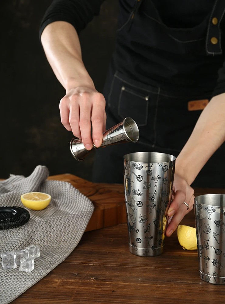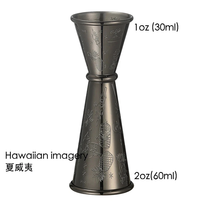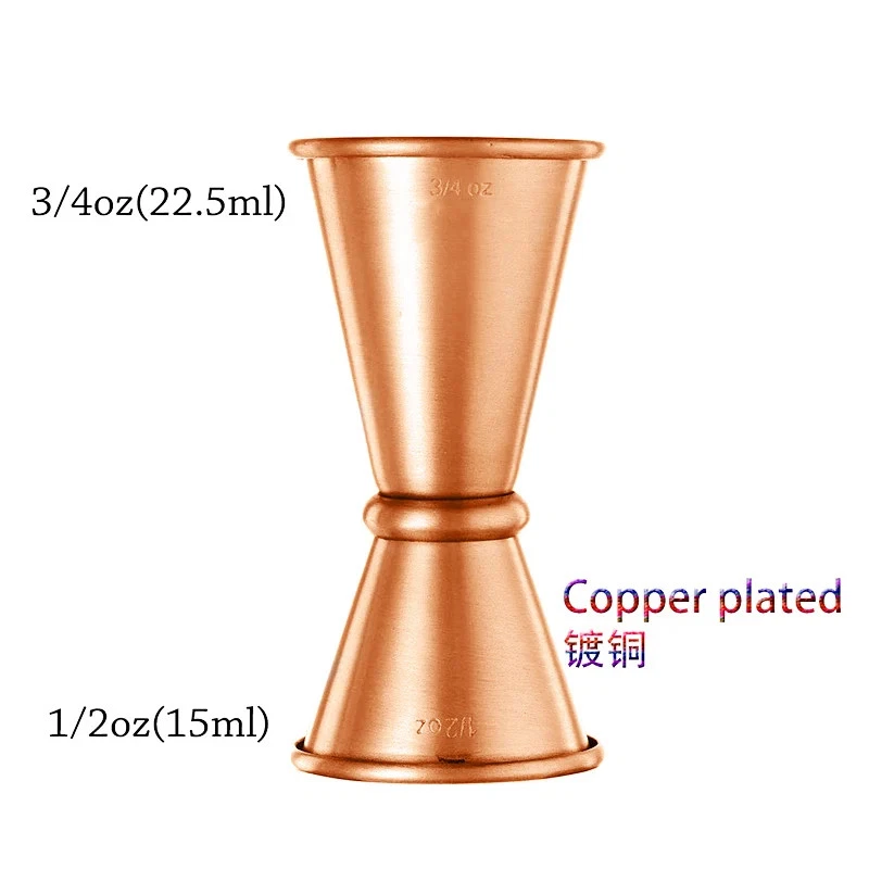 Japanese-Style Double Cocktail Jigger measures ingredients for mixing beverages and making craft cocktails and other mixed drinks Made from stainless steel with brushed finish,Copper Plating,Gold Plating,Gunmetal Black, precise measurements; versatile addition to flatware and bar accessories Smaller jigger measures up to 1-ounce (30-milliliters) with 0.5-ounce (15-milliliters) and .75-ounce (22-milliliters) increments marked on the inside Larger jigger measures up to 2-ounces (60-milliliters) with 1.5-ounce (45-milliliters) increment marked on the inside