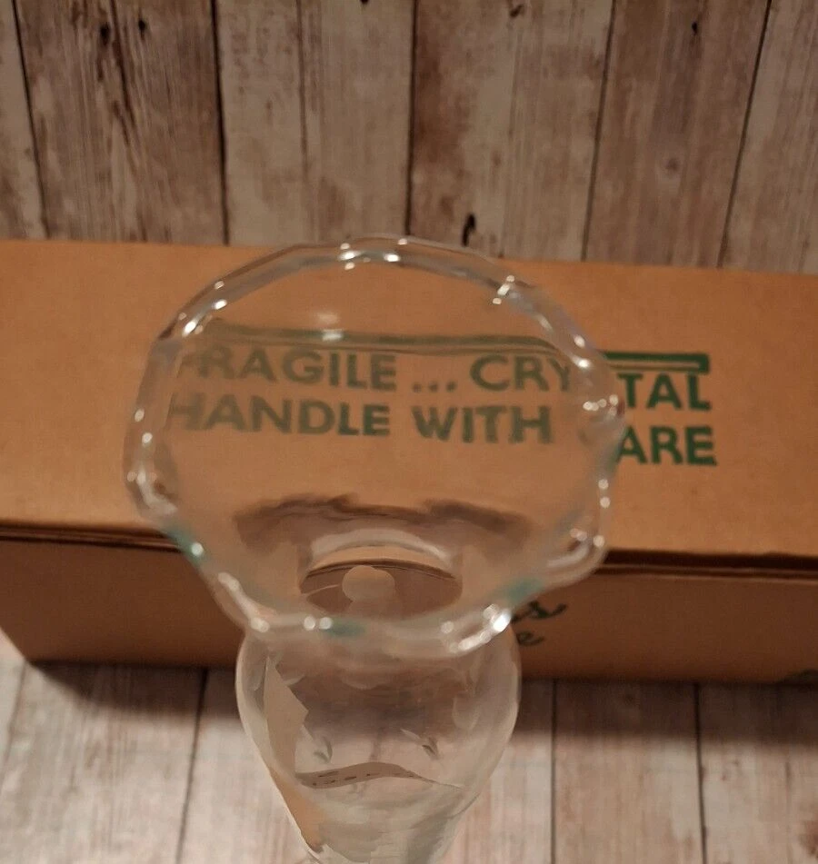HomeJarrón de cristal/soplado a mano/casa de la princesa #409 grabado, con volantes muy bonito