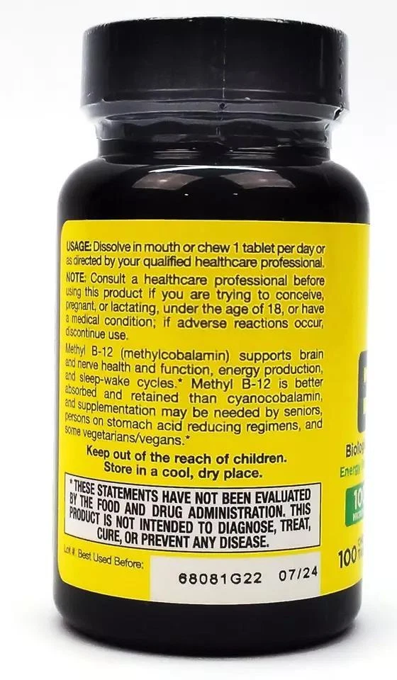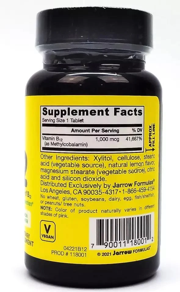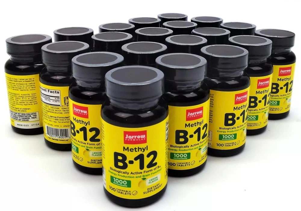 ebay template Jarrow Formulas Vitamin B-12 Methyl Bioactive 1000 Mcg Chewable Tabs - 100 Count Item Condition: New Source: Buy with confidence - Surplus products from health and nutrition store Storage: For maximum freshness, the product is stored in cool dry place Package: Original package Brand: Jarrow Formulas, Inc. Type: Dietary Supplement Count: 100 Exp Date: 07-2024