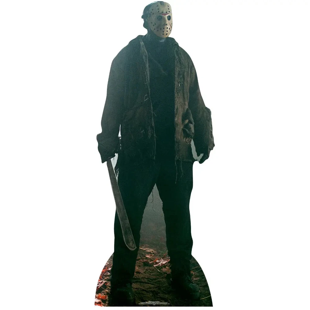 Add a touch of terror to your space with this Jason Voorhees lifesize cardboard cutout, the perfect way to bring the infamous slasher from Friday the 13th to life for your Halloween or horror-themed event. This chilling standee captures Jason in his infamous hockey mask and tattered clothing, holding his signature machete, ready to bring terror to your Halloween celebrations, horror events, or any space in need of a frightening presence. Product Features: Iconic Design: Features Jason in his classic appearance, wearing the weathered hockey mask, a blood-spattered shirt, and carrying his deadly machete, perfectly capturing his terrifying essence from the Friday the 13th franchise. Lifesize Appeal: Stands at full height, making it an imposing and fearsome centerpiece for horror movie screenings, haunted house displays, or Halloween parties. High-Quality Construction: Printed on durable, eco-friendly cardboard with sharp, high-resolution graphics that highlight every terrifying detail of Jason’s menacing look. Easy Setup: Includes a fold-out stand for quick and simple assembly, providing stable support for a secure and lasting display. Versatile Use: Perfect for horror fans, Friday the 13th enthusiasts, Halloween parties, haunted house setups, or as a standout decoration for any horror-themed event. Product Details: Dimensions: Height 190cm x Width 75cm Official Licensed Product Looks Amazing Alone or When With Other Cutouts in the Range Simply Pop Out, Unfold Easel & Erect Folds Away For Easy Storage & Delivery
