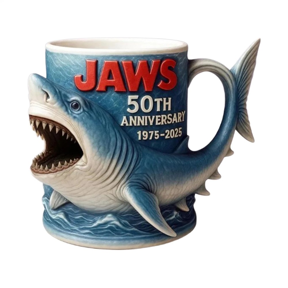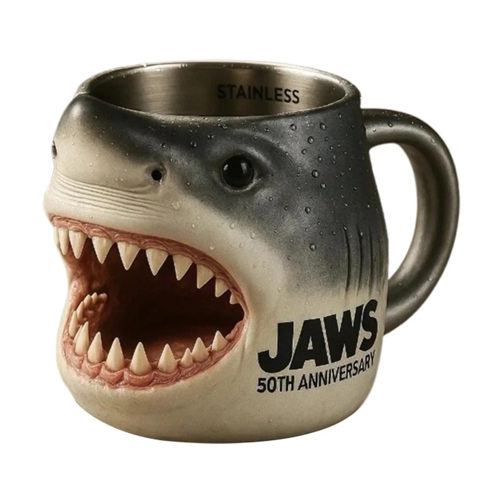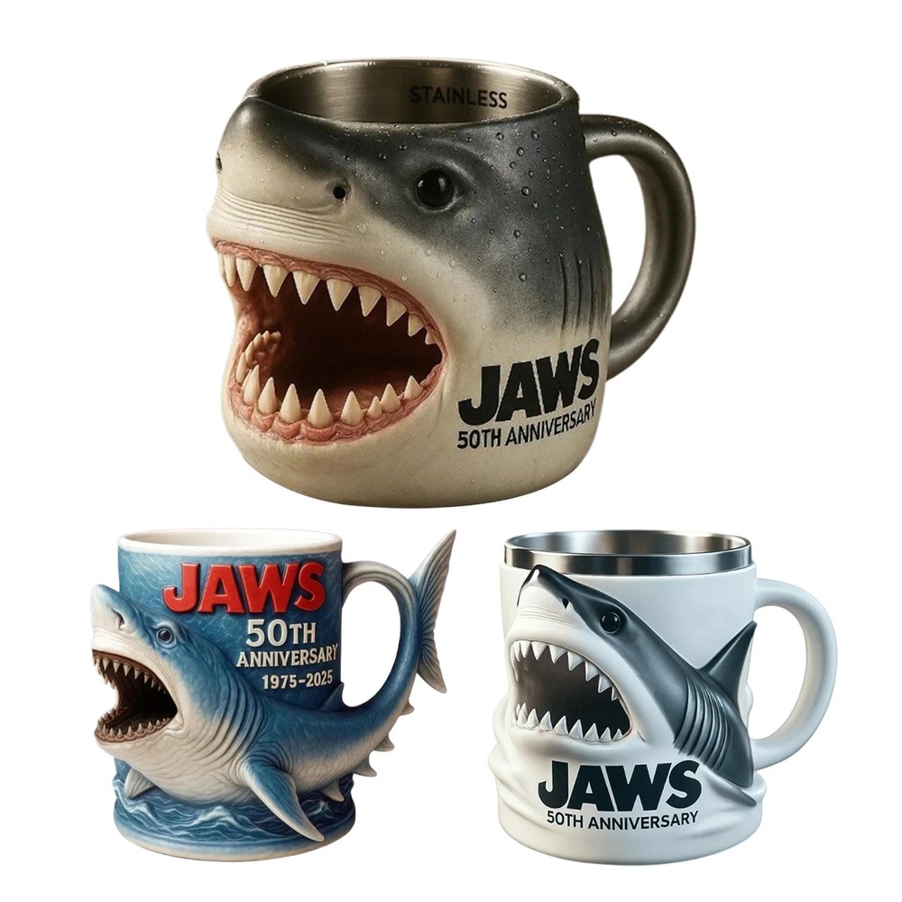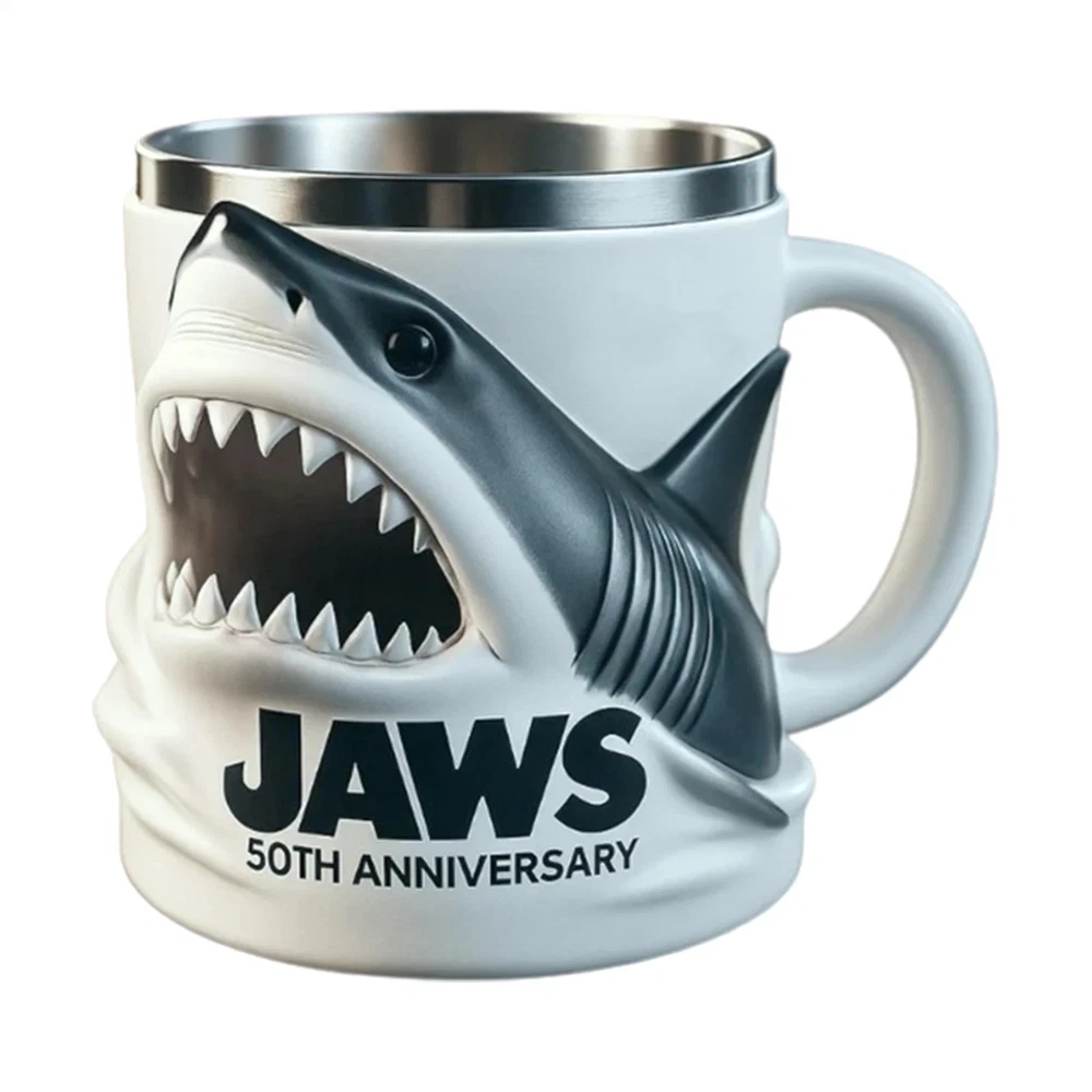 Jaws 50th Anniversary Mug 3D Beer Tumbler Film Memorabilia Gifts Mugs Product Description: Bullet Points: Movie Theme Commemoration: Celebrate iconic elements with a coffee mug that captures movie theme commemoration through classic character design, blending collection and artistic significance for film enthusiasts Immersive Artistic Design: Elevate your coffee experience with a mug inspired by iconic scenes, integrating artistic details and visual legacy for multi-scene versatility, perfect for art enthusiasts seeking creative expression Long-lasting Material: Crafted to last, using premium materials combined with stable craftsmanship and a refined, polished surface, providing a seamless blend of aesthetic appeal and functional, non-slip, ergonomic handling Ceremonial Experience Upgrade: Elevate your coffee ritual with a mug designed to enhance creativity and artistic living, blending functionality and aesthetic appeal for daily use Ideal Present: Crafted to enhance emotional present value, this mug fits various occasions, complements ceremonial celebrations, fosters shared stories, and stands out as a timeless collectible keepsake Built for versatility, this coffee mug boasts a leakproof and ergonomic design, providing comfort and convenience for office settings and outdoor activities alike. The non-slip grip ensures secure handling, while its multifunctional capability supports a variety of beverages, including coffee, tea, and milk. With a large capacity and heat-resistant construction, it is well-suited for commuting, camping, or hiking trips. Specification: Product Name: Coffee Mug Product Material: Resin+Stainless Steel Product List: 1* Coffee Mug Note: Due to different lighting and screen settings, the item color may be slightly different from the picture. Due to different manual measurements, please allow a 1-2cm difference in size.