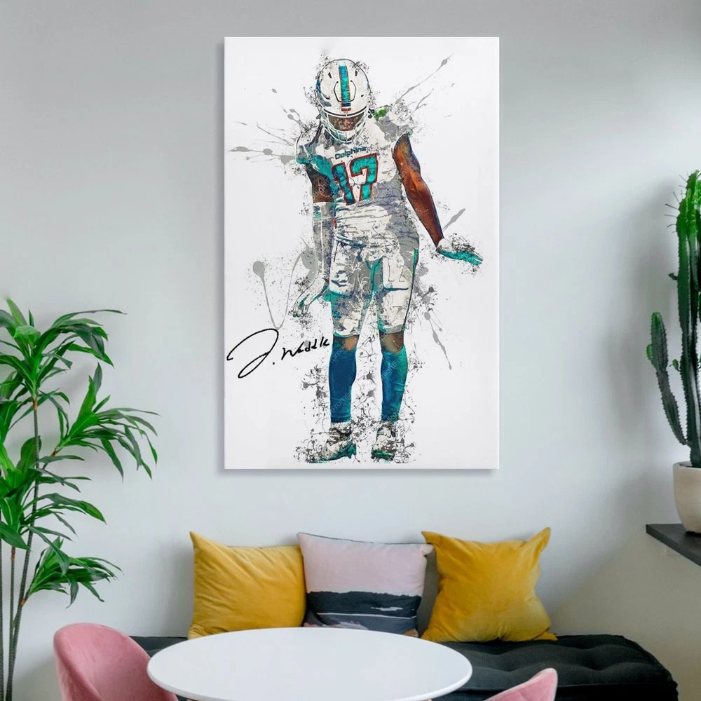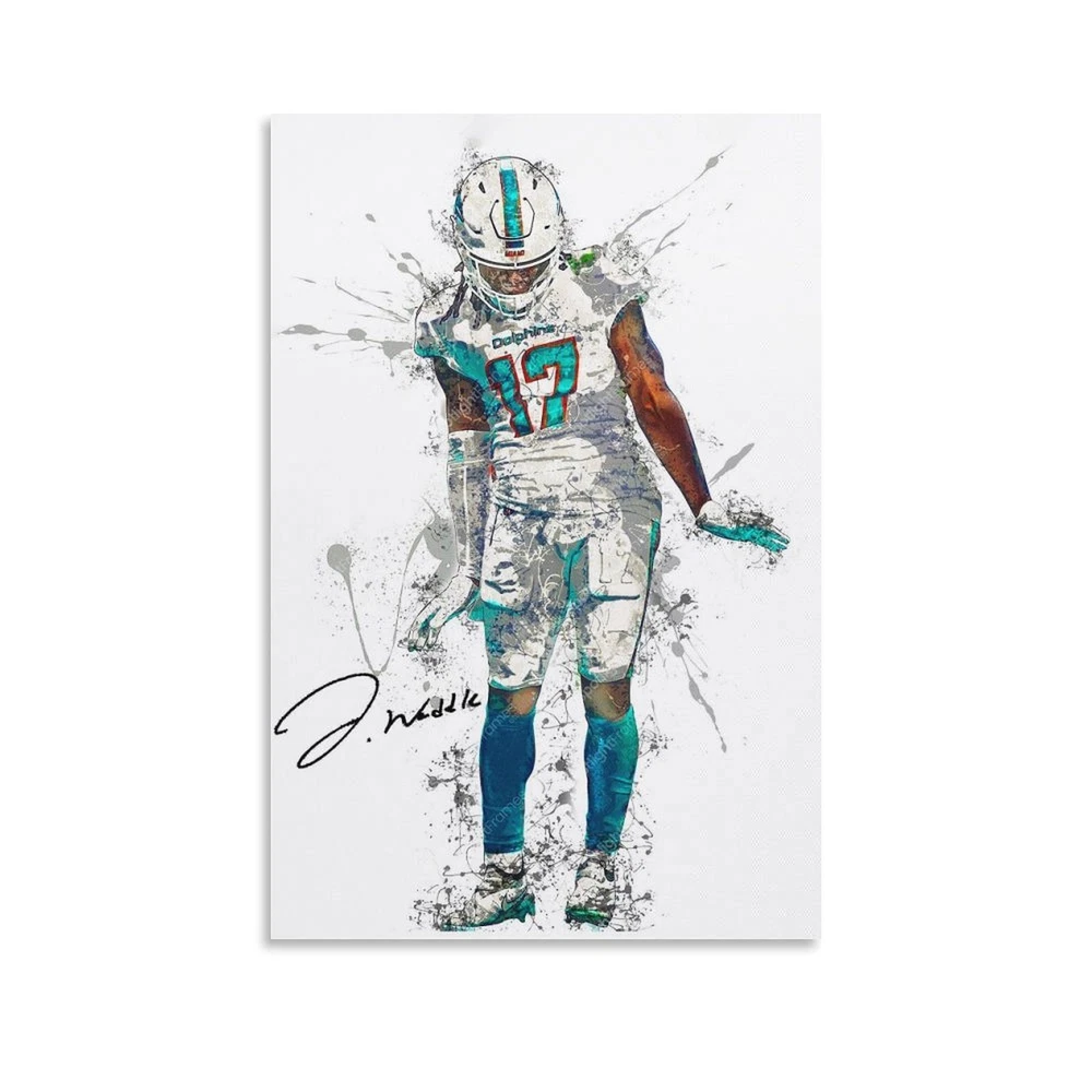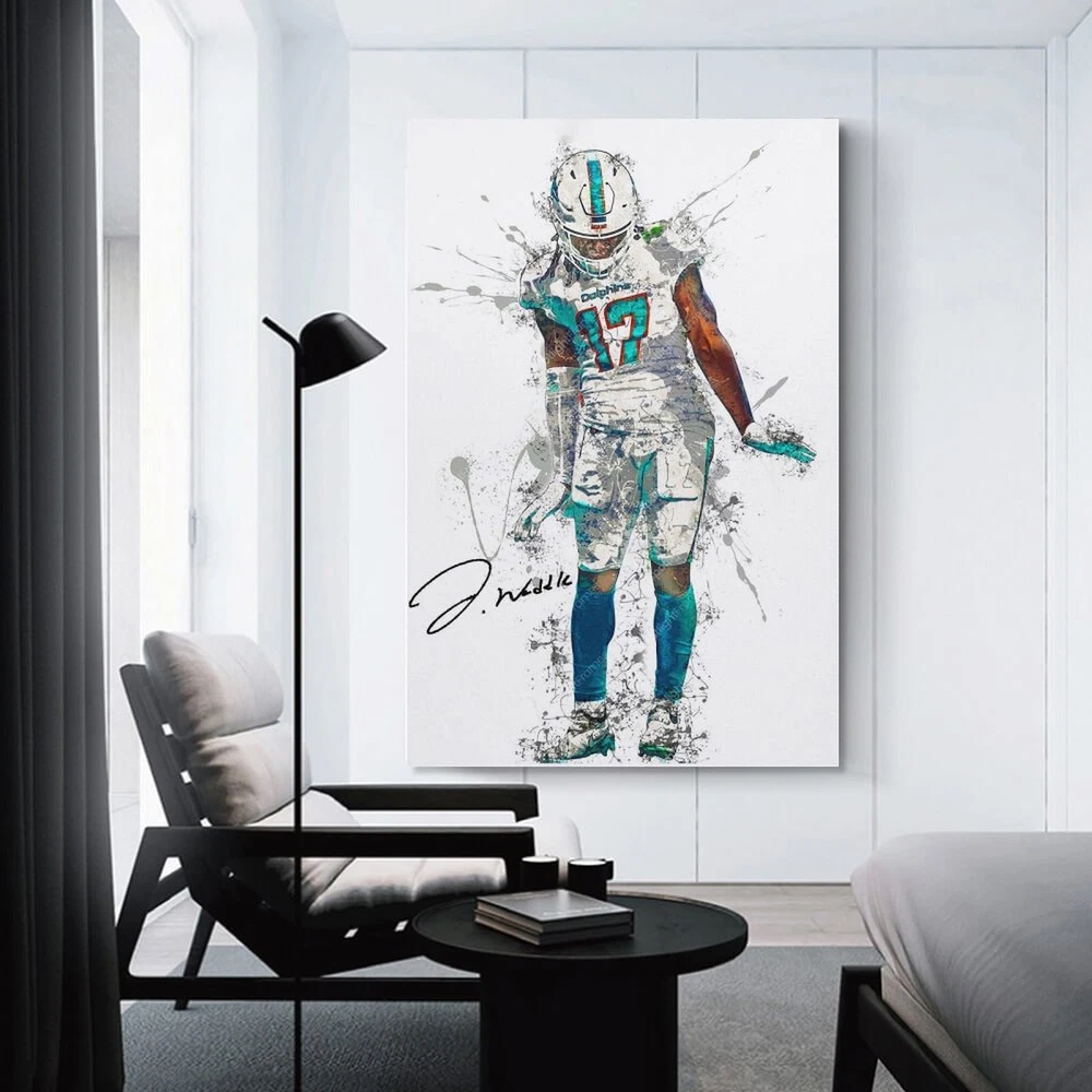 Jaylen Waddle Signed Poster Canvas Painting Wall Art Home Dec