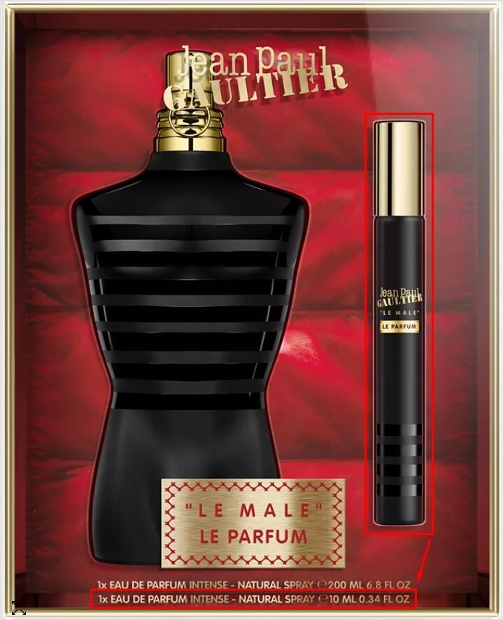 Design House: Jean Paul Gaultier Scent: Le Male Le Parfum Eau de Parfum Intense Size: 10ml / 0.34oz Type: Sample Travel Spray These sprays came as a part of a gift set with a 200ml bottle (pictured) and are being sold individually.