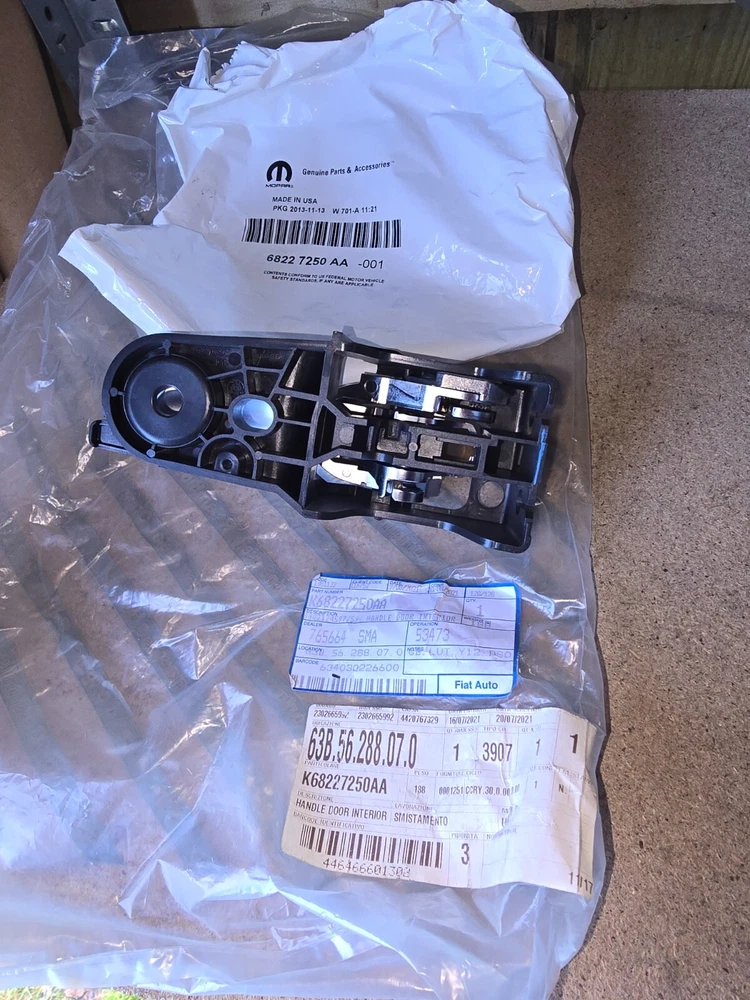 Genuine Mopar Front Rear RH Inner Door Handle Assy - K68227250AA Please send VIN / REG Number to check fitment compatibility before buying to make sure part is compatible. Please dont assume this fits your vehicle please ask first i'm only a message away. (Any overseas buyers via Global shipping please be aware of possible custom charges in there countries before purchases as im not responsible for this as thats an extra charge outwith my control) Fits: JEEP - 2014KL CHEROKEE (2014) JEEP - 2015KL CHEROKEE (2015) JEEP - 2016KL CHEROKEE (2016)