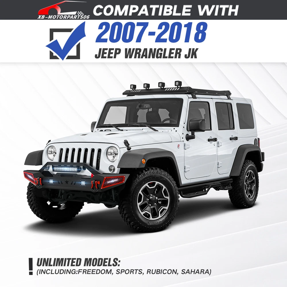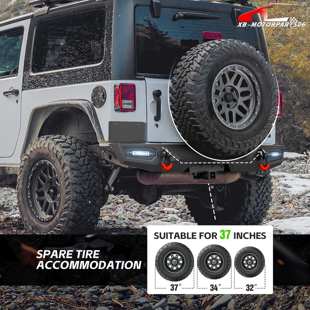 Front /Rear Bumper W/ License Plate Frame For 07-2017 2018 Jeep Wrangler JK JKU Please pay attention to the product options you select: If you choose Front & Rear Bumper,You can get 1 × Front Bumper, 1 × Rear Bumper and Mounting Hardware; If you choose Only Front Bumper,You can get 1 × Front Bumper and Mounting Hardware; If you choose Only Rear Bumper,You can get 1 × Rear Bumper and Mounting Hardware; Suitable Models : Compatible with 2007-2018 Jeep Wrangler JK JKU Unlimited 2/4 Doors Package Includes : ① Front & Rear Bumper option : 1 x Front Bumper, 1 x Rear Bumper, 5 x LED Lights, 2 x License Plate Bracket , 1 x Winch Plate , 4 x D-rings, 2" Hitch Receiver , Skid Plate, 2 x manual, screw fittings ② Fro nt Bumper option : 1 x Front Bumper, 1 x License Plate Bracket, 1 x Winch Plate, 3 x LED Lights, 2 x D-rings, Skid Plate, 1 x manual, screw fittings ③ Rear Bumper option : 1 x Rear Bumper, 2 x D-rings, 2 x LED Lights, 2" Hitch Receiver, 1 x manual, License Plate Frame, screw fittings Product Information : Package Dimensions : 65.16"D x 12.99"W x 16.73"H Installation mode: Bolt-On With Sensor Holes: No Steel thickness: 3mm Placement on Vehicle: Front/Rear Item Weight: Front Bumper: 69 Pounds; Rear Bumper: 65 Pounds Material: Carbon Steel Color: Black (hand measurements may have an error of 2-3 mm/0.078-0.118 in) Feature : Front bumper : ① The front bumper comes with a rugged style skid plate, a 12,000 lbs winch plate, a license plate bracket, two 4.75-ton D-rings (rated at 9500 lbs), pre-drilled holes for OE Fog Lights, a 312W LED spotlight and two 18W LED spotlights for strong illumination; ② The package includes all necessary mounting hardware and detailed installation instructions. The bumper with skid plate can be easily installed using bolt-on installation, without the need for drilling; ③ Strong steel front bumper and skid plate with two-stage black powder coating resists rust, ensuring durability and lasting appeal, even with minor damage; ④ Powder Coated, Durability, Waterproof; Rear Bumper : ① This bumper includes 4.75-ton capacity D-rings (rated at 9500 lbs.), 2X upgraded LED lights for illumination, Universal License Plate Bracket and a standard 2" receiver hitch; ② The package comprises mounting hardware and user-friendly installation instructions for a straightforward bolt-on installation—no drilling needed; ③ High-strength steel, durable rear bumper. Textured black powder coating resists rust for long-lasting performance and appearance; ④ Durability, Waterproof, Rust-proof; Warranty Period :2 year Standard Shipping (FedEx Ground or FedEx Home Delivery) Will usually ship within 3 business days of receiving cleared payment Please pay attention to the product options you select: If you choose Front & Rear Bumper,You can get 1 × Front Bumper, 1 × Rear Bumper and Mounting Hardware; If you choose Only Front Bumper,You can get 1 × Front Bumper and Mounting Hardware; If you choose Only Rear Bumper,You can get 1 × Rear Bumper and Mounting Hardware; Suitable Models : Compatible with 2007-2018 Jeep Wrangler JK JKU Unlimited 2/4 Doors Package Includes : ① Front & Rear Bumper option : 1 x Front Bumper, 1 x Rear Bumper, 5 x LED Lights, 2 x License Plate Bracket , 1 x Winch Plate , 4 x D-rings, 2" Hitch Receiver , Skid Plate, 2 x manual, screw fittings ② Fro nt Bumper option : 1 x Front Bumper, 1 x License Plate Bracket, 1 x Winch Plate, 3 x LED Lights, 2 x D-rings, Skid Plate, 1 x manual, screw fittings ③ Rear Bumper option : 1 x Rear Bumper, 2 x D-rings, 2 x LED Lights, 2" Hitch Receiver, 1 x manual, License Plate Frame, screw fittings Product Information : Package Dimensions : 65.16"D x 12.99"W x 16.73"H Installation mode: Bolt-On With Sensor Holes: No Steel thickness: 3mm Placement on Vehicle: Front/Rear Item Weight: Front Bumper: 69 Pounds; Rear Bumper: 65 Pounds Material: Carbon Steel Color: Black (hand measurements may have an error of 2-3 mm/0.078-0.118 in) Feature : Front bumper : ① The front bumper comes with a rugged style skid plate, a 12,000 lbs winch plate, a license plate bracket, two 4.75-ton D-rings (rated at 9500 lbs), pre-drilled holes for OE Fog Lights, a 312W LED spotlight and two 18W LED spotlights for strong illumination; ② The package includes all necessary mounting hardware and detailed installation instructions. The bumper with skid plate can be easily installed using bolt-on installation, without the need for drilling; ③ Strong steel front bumper and skid plate with two-stage black powder coating resists rust, ensuring durability and lasting appeal, even with minor damage; ④ Powder Coated, Durability, Waterproof; Rear Bumper : ① This bumper includes 4.75-ton capacity D-rings (rated at 9500 lbs.), 2X upgraded LED lights for illumination, Universal License Plate Bracket and a standard 2" receiver hitch; ② The package comprises mounting hardware and user-friendly installation instructions for a straightforward bolt-on installation—no drilling needed; ③ High-strength steel, durable rear bumper. Textured black powder coating resists rust for long-lasting performance and appearance; ④ Durability, Waterproof, Rust-proof; Warranty Period :2 year